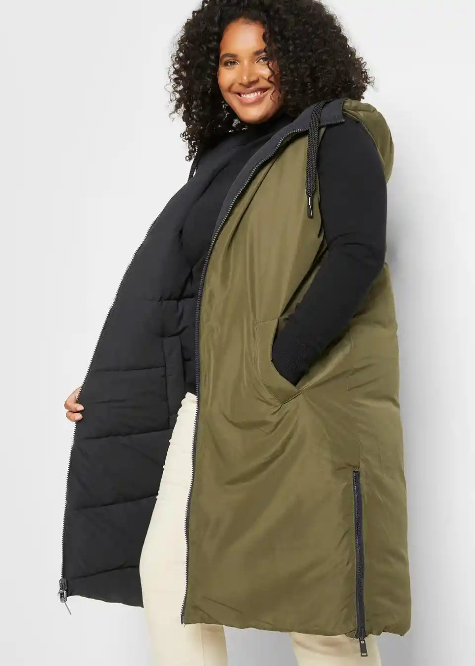 Oversize prešiti telovnik, obojestranski, s kapuco
