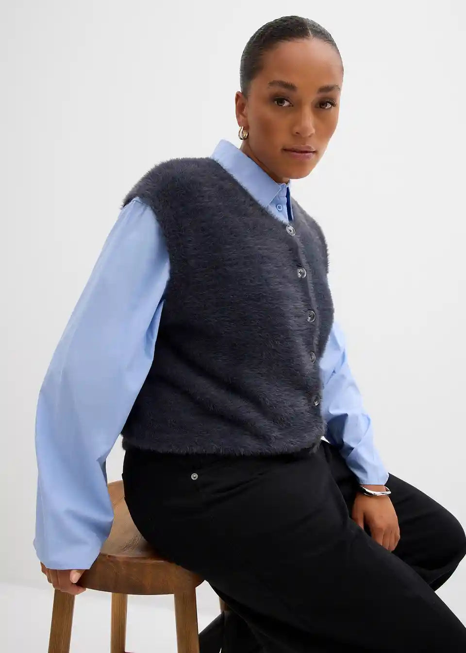 Puhast telovnik z letvijo za zapenjanje spredaj in mehkim občutkom