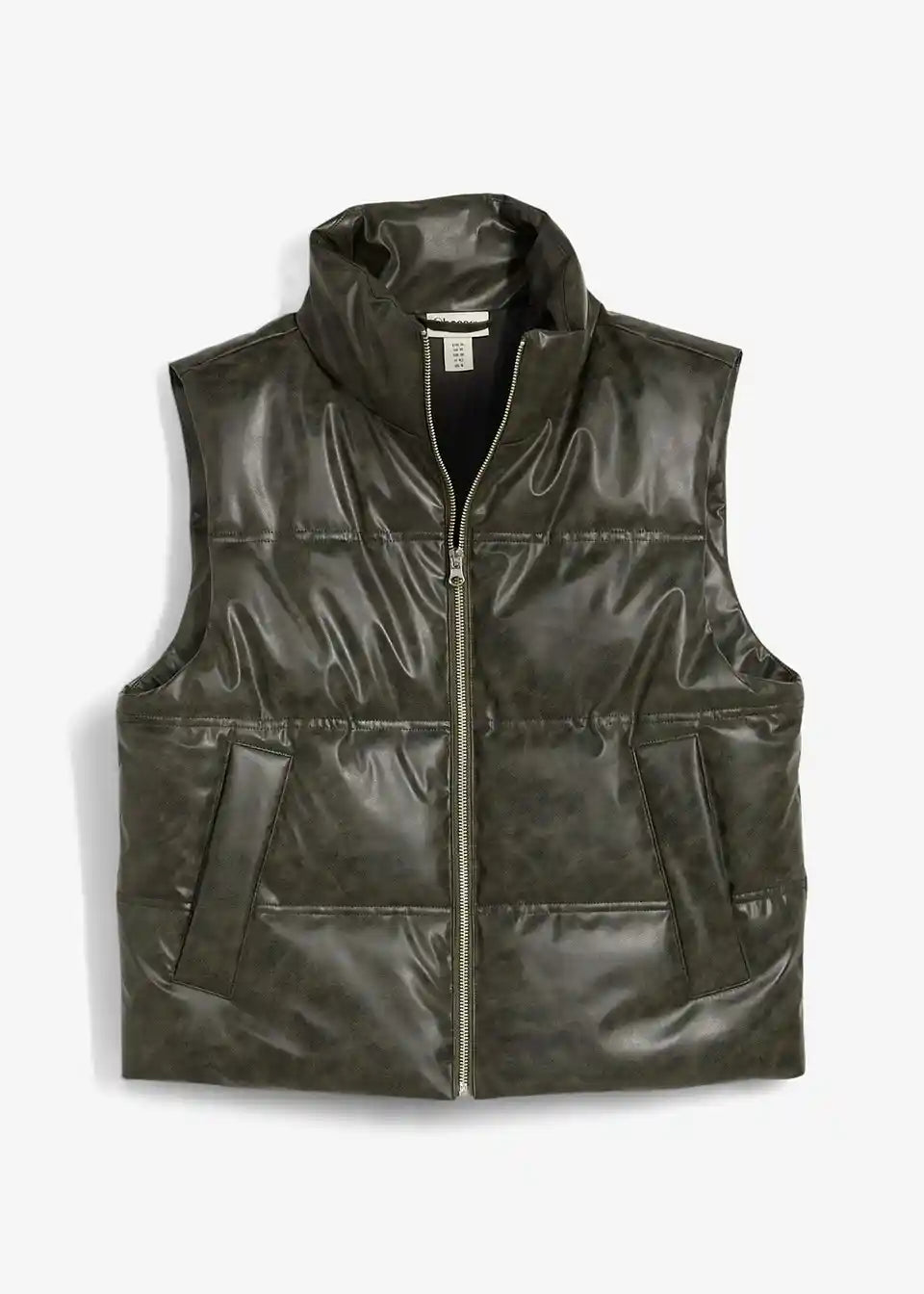 Moderen prešit telovnik iz umetnega usnja v spranem videzu
