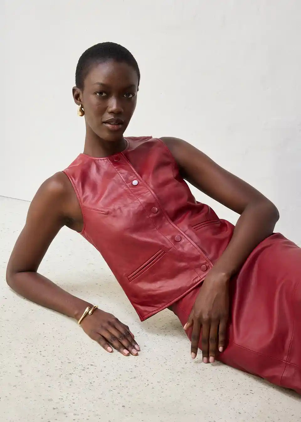 Material:zgornji material: 100% ovčje usnje, podloga: 55% poliester (recikliran), 45% viskoza
