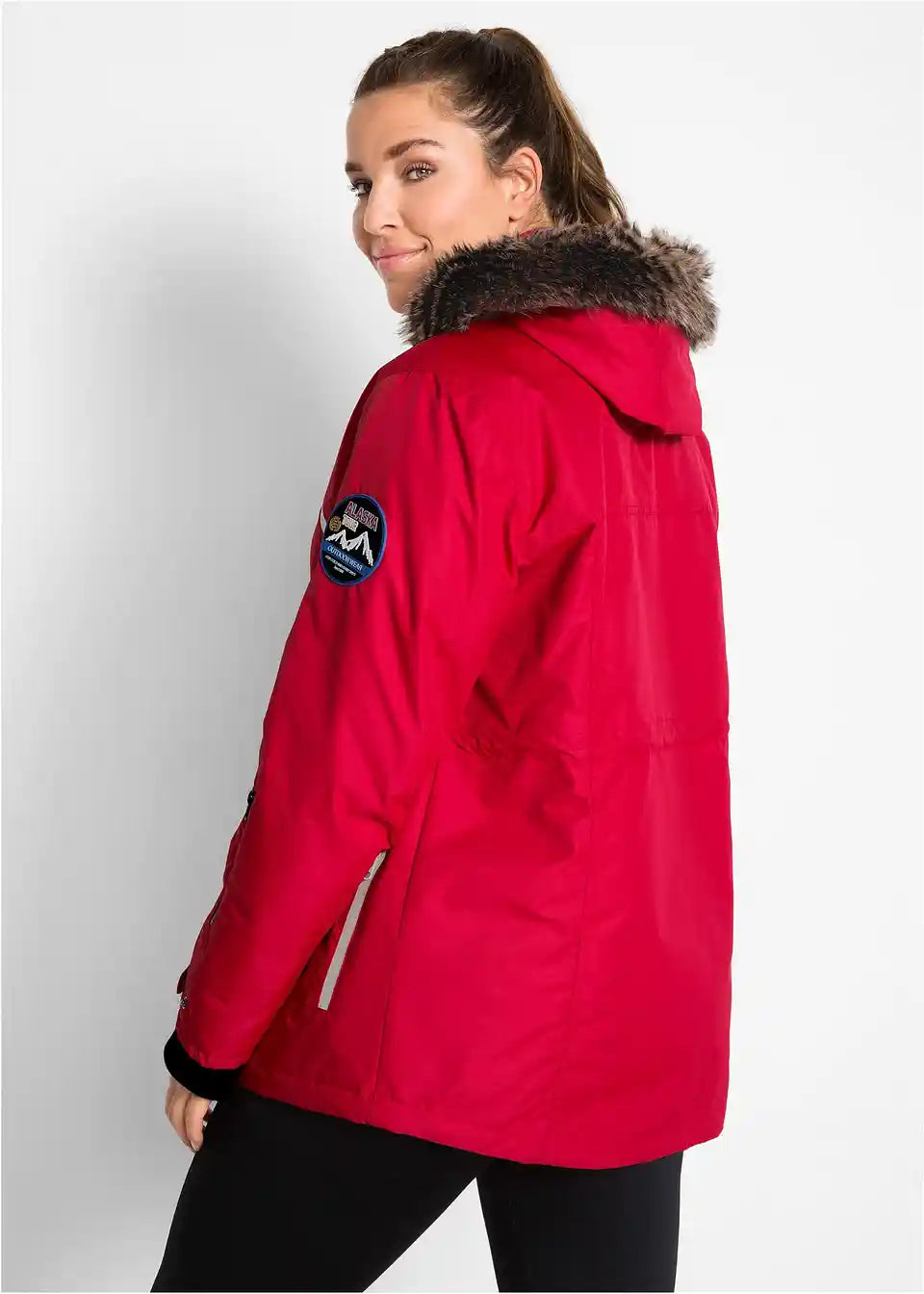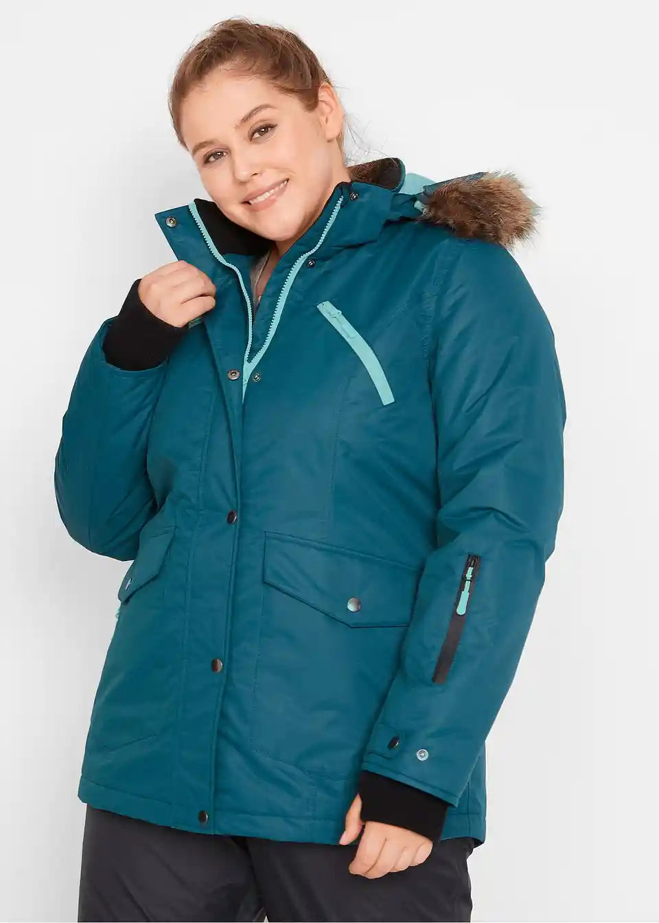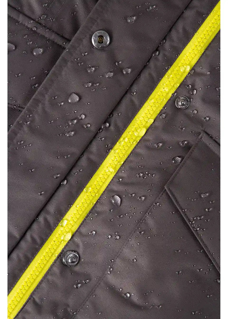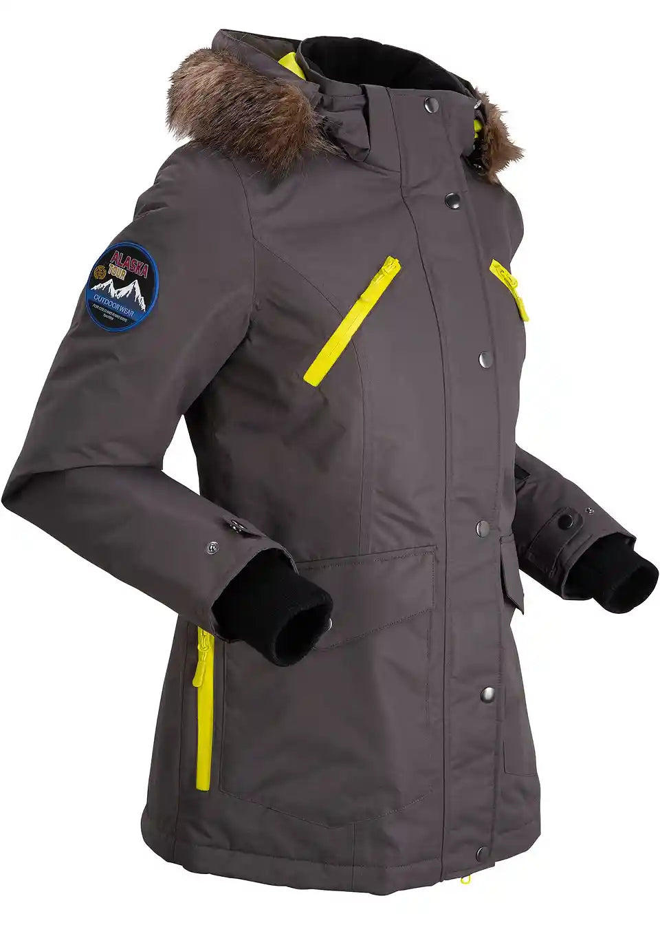 Praktična dežna jakna z odstranljivo kapuco ter odstranljivim umetnim krznom in zapiranjem žepov