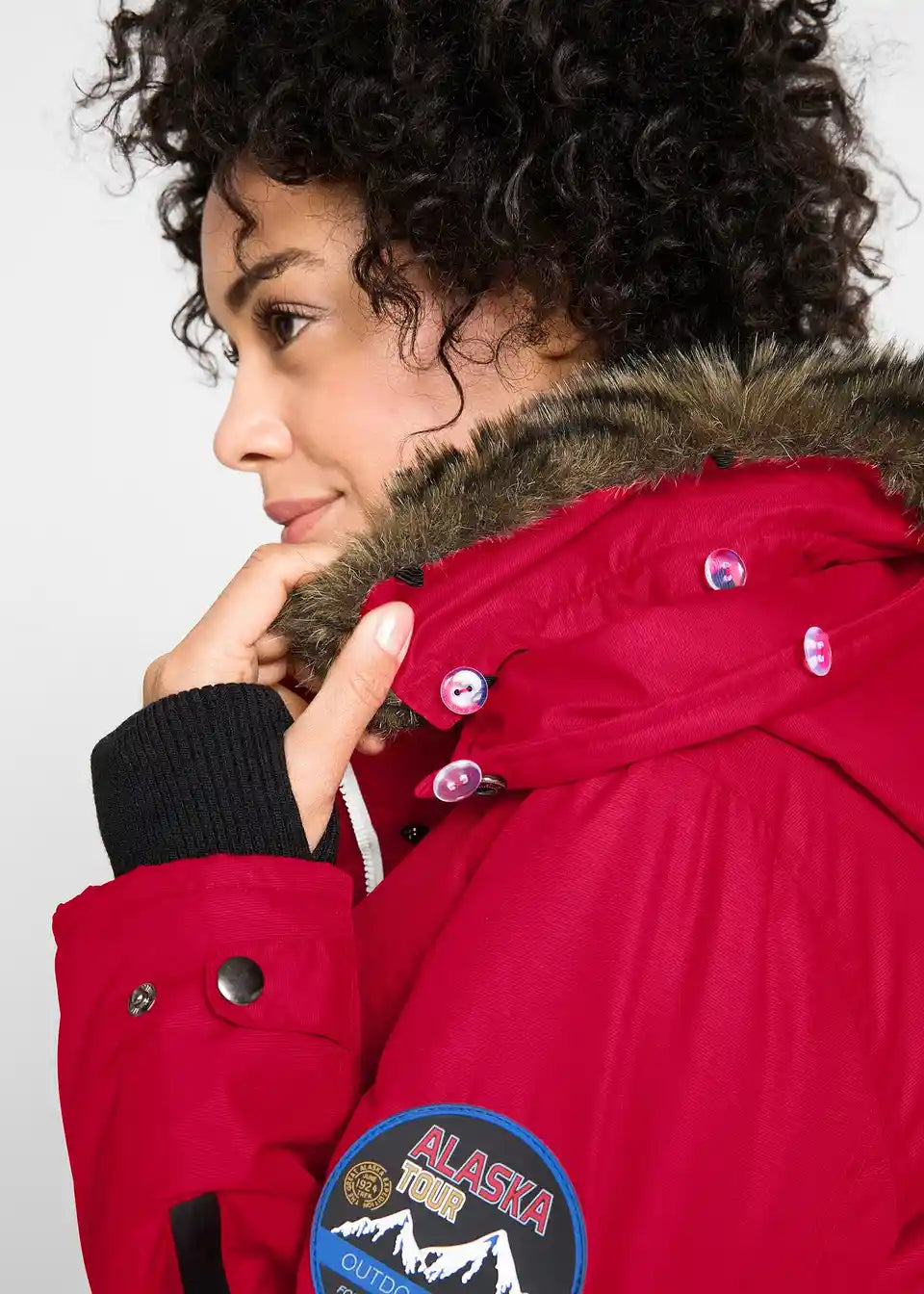 Material:zgornji material: 52% poliester (recikliran), 48% poliester, notranja stran: 100% poliester, podloga in podloga rokavov: 100% poliester, umetno krzno: 47% modakril, 39% akril, 14% poliester