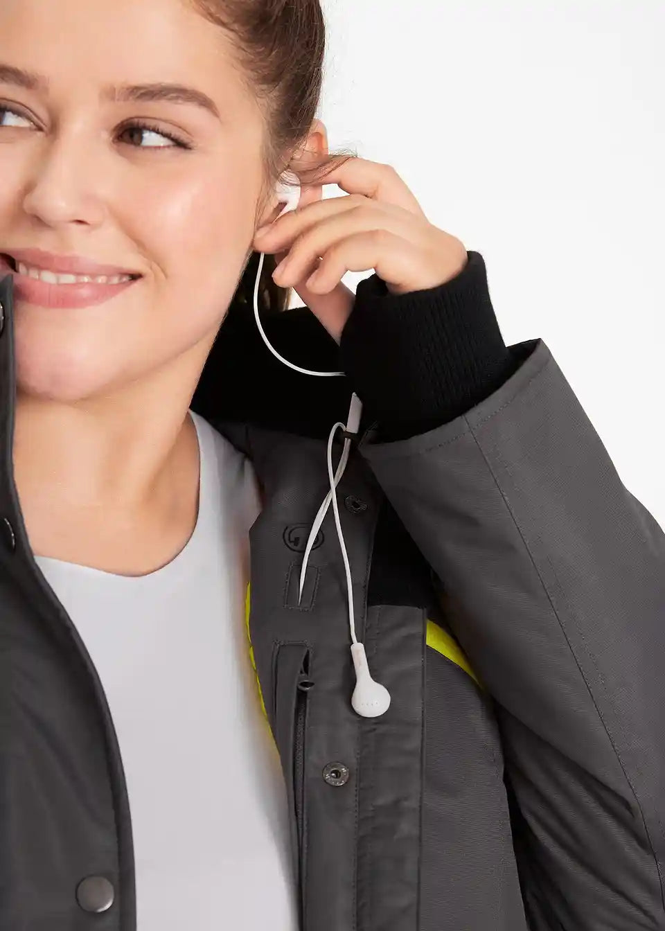 Funkcije:s snemljivo kapuco, iz zračnega materiala, s prevlečenimi šivi, nastavljivo širino, za veter neprepustno vodoodporno površino, toplo podlogo in zakritim zapenjanjem