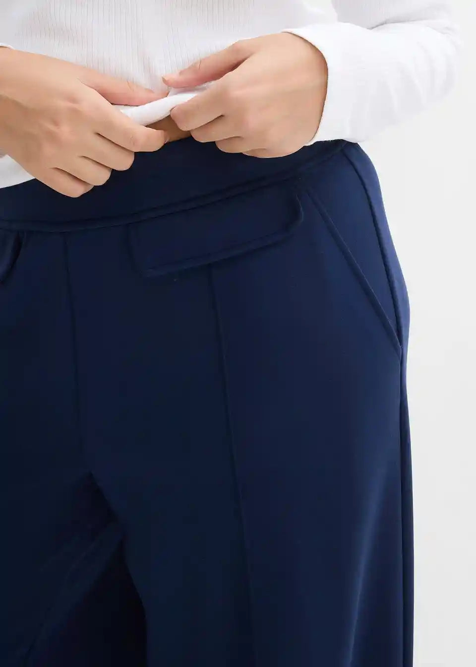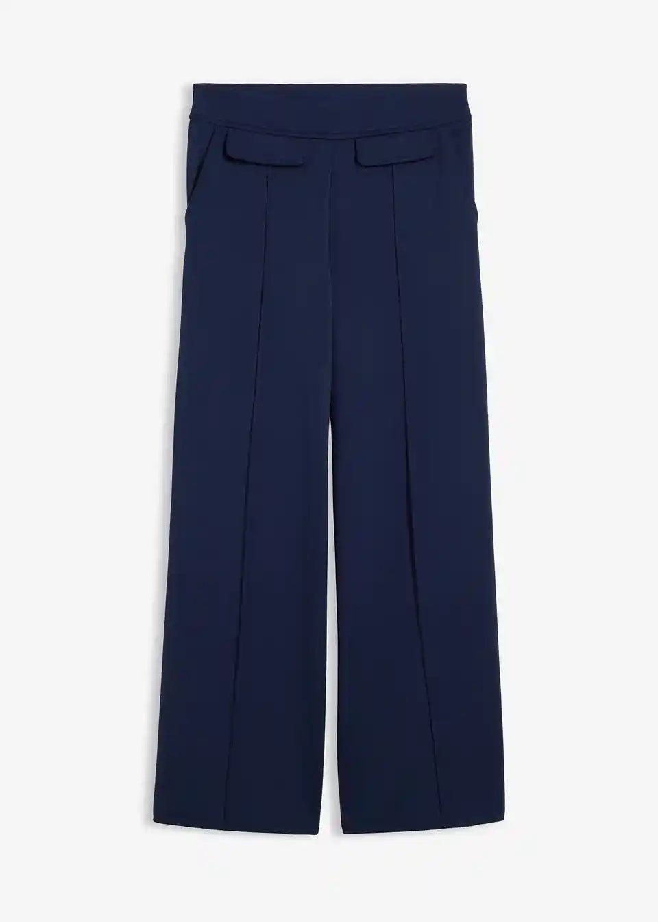 Dolge boot-cut hlače z okrasnimi gubami in nakazanimi žepi s poklopcem spredaj