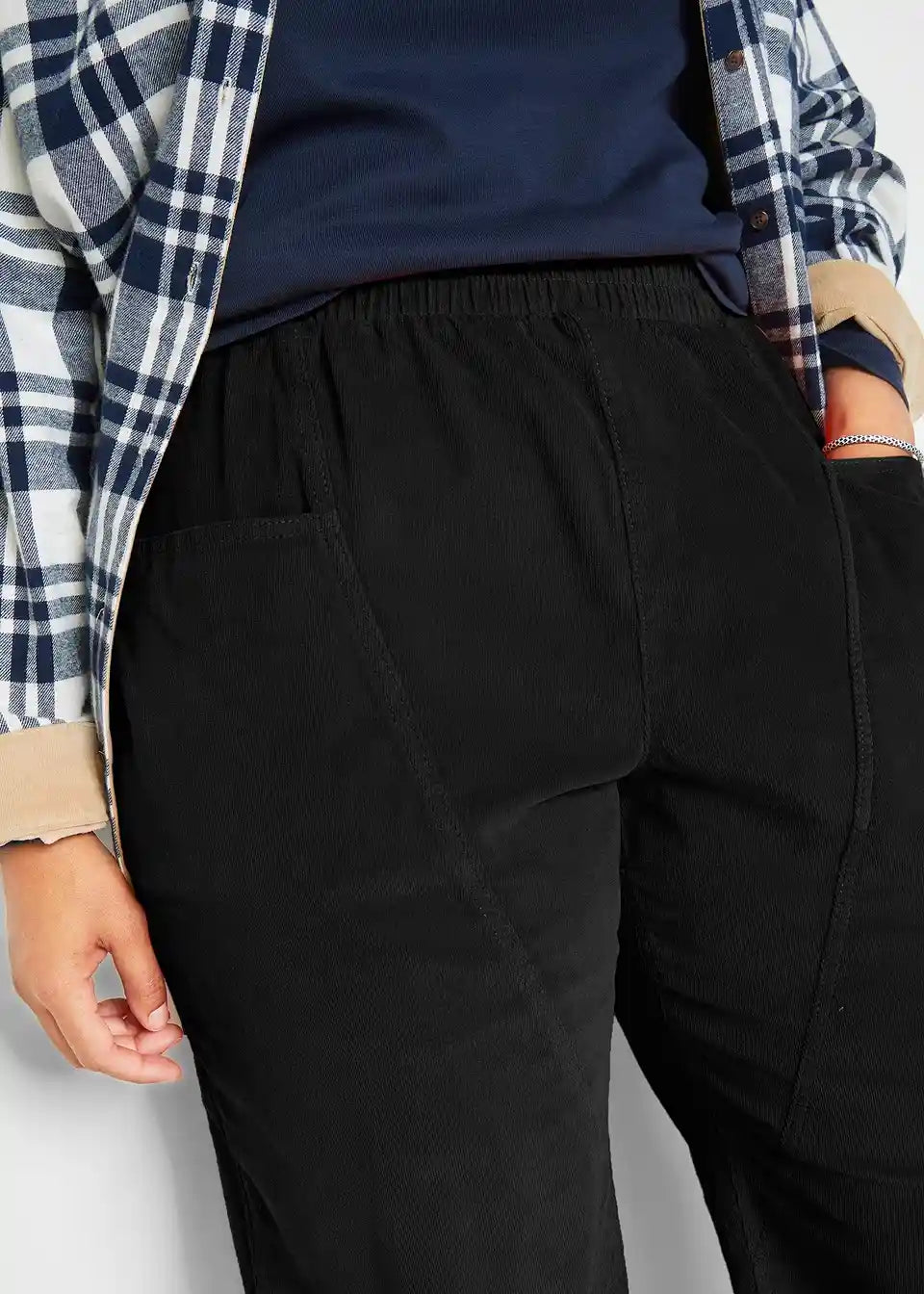 Hlače iz žameta z velikimi žepi in stretch pasom