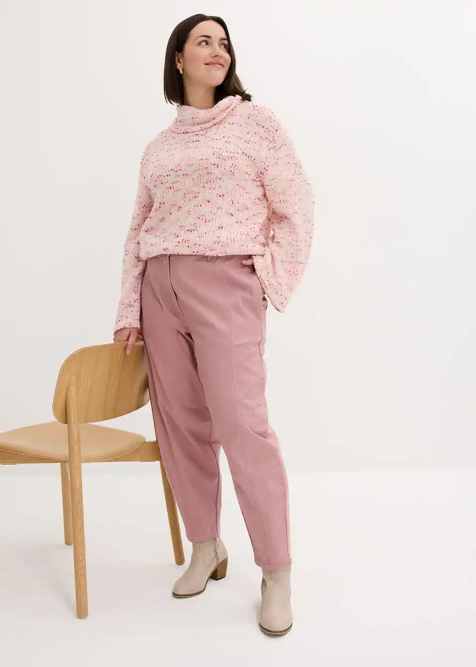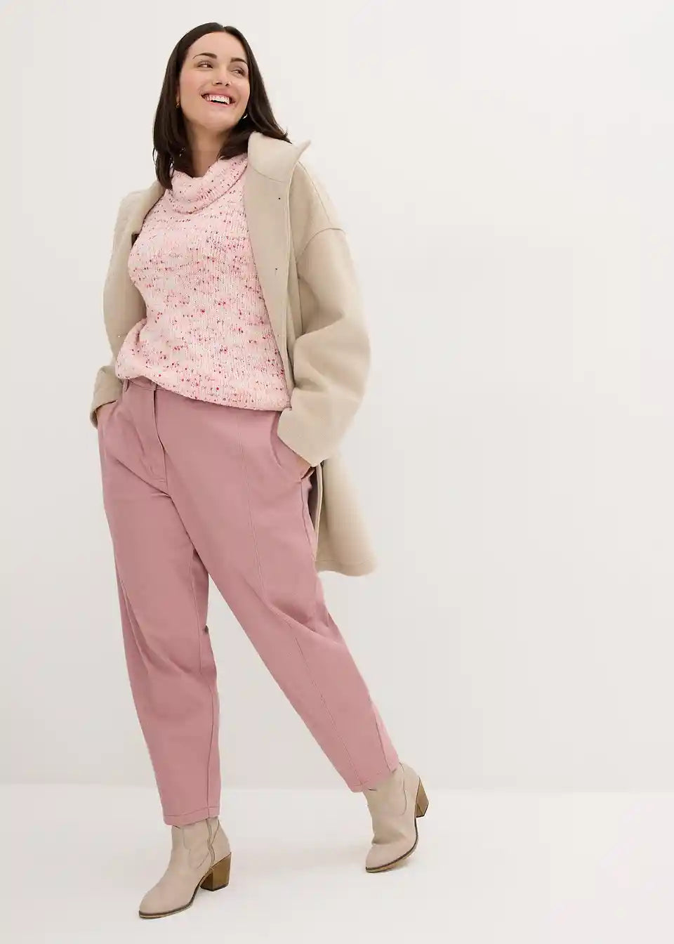 Balonaste hlače iz kepra z vnaprej pomaknjenimi stranskimi šivi in udobnim visokim pasom