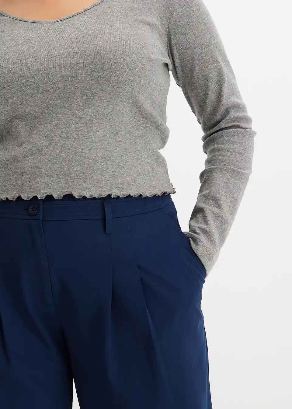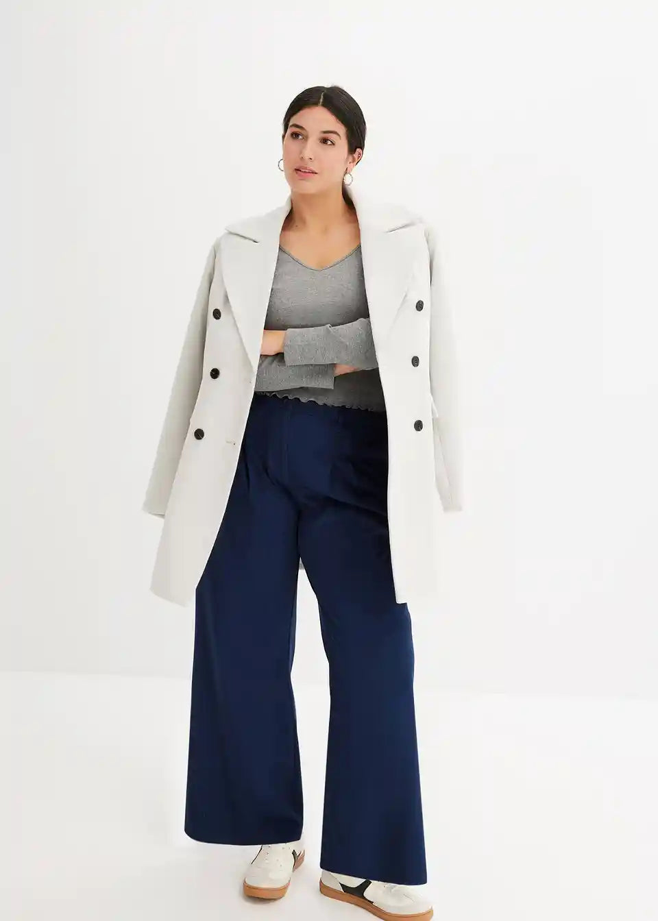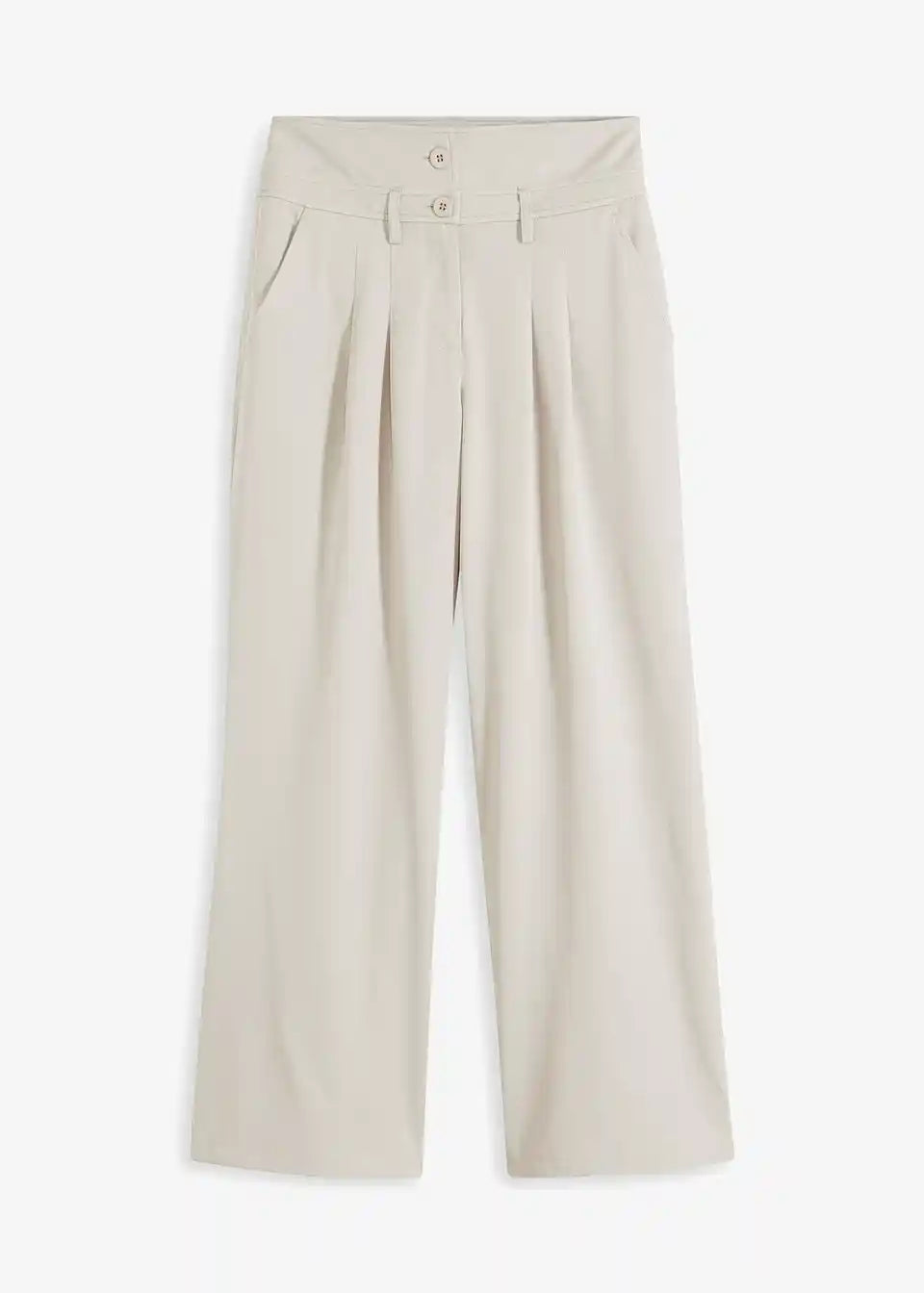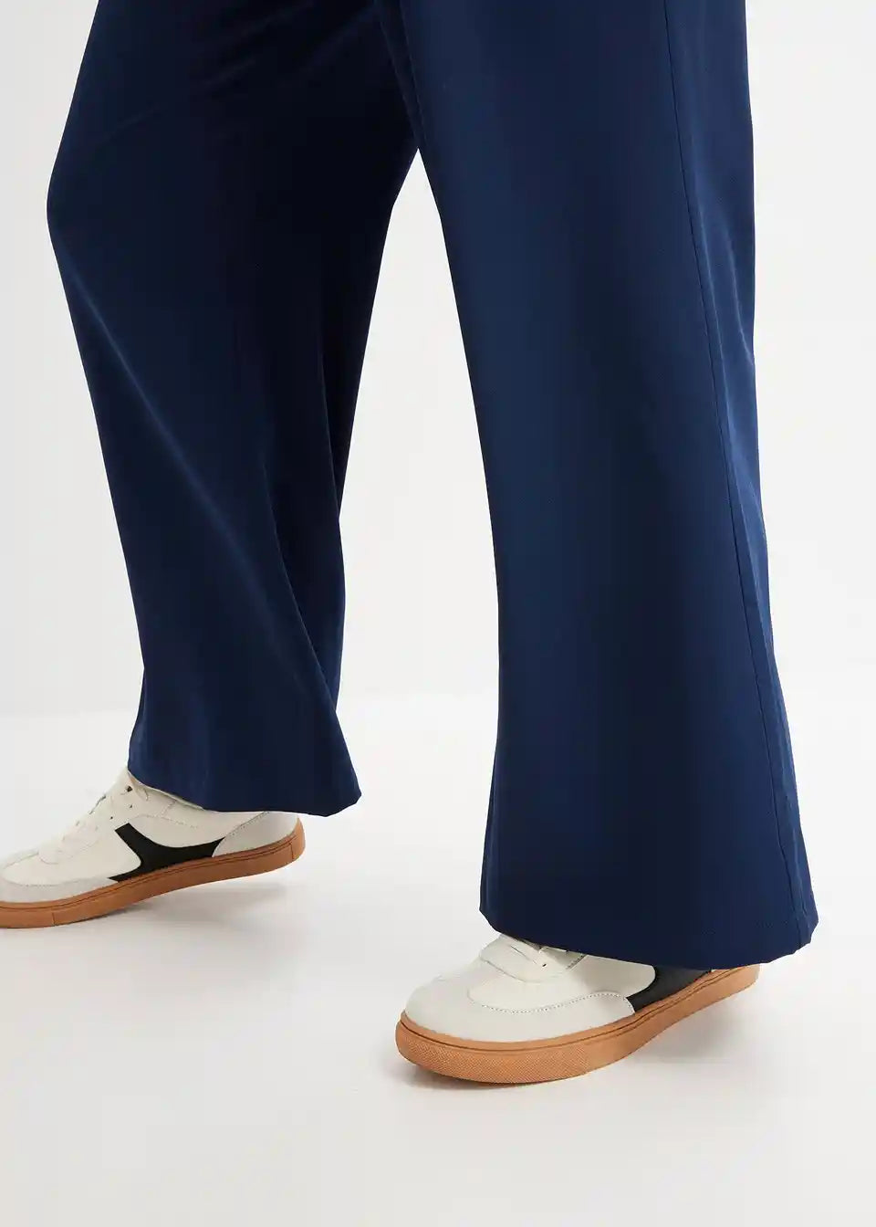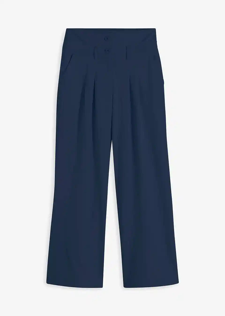Moderne hlače iz kepra z visokim pasom in razširjenimi hlačnicami