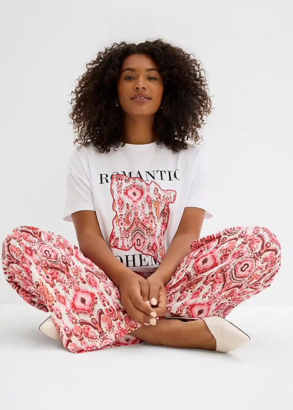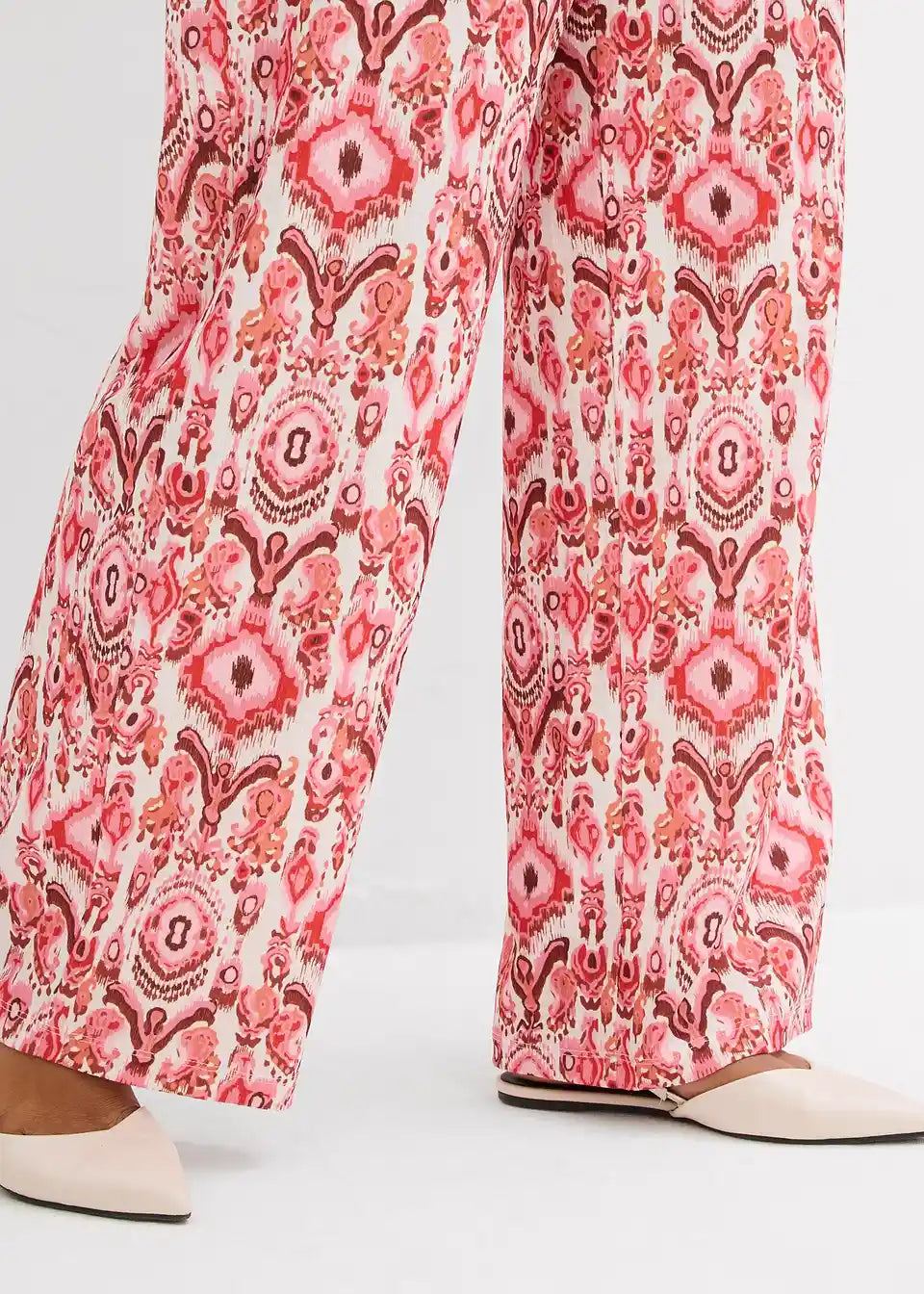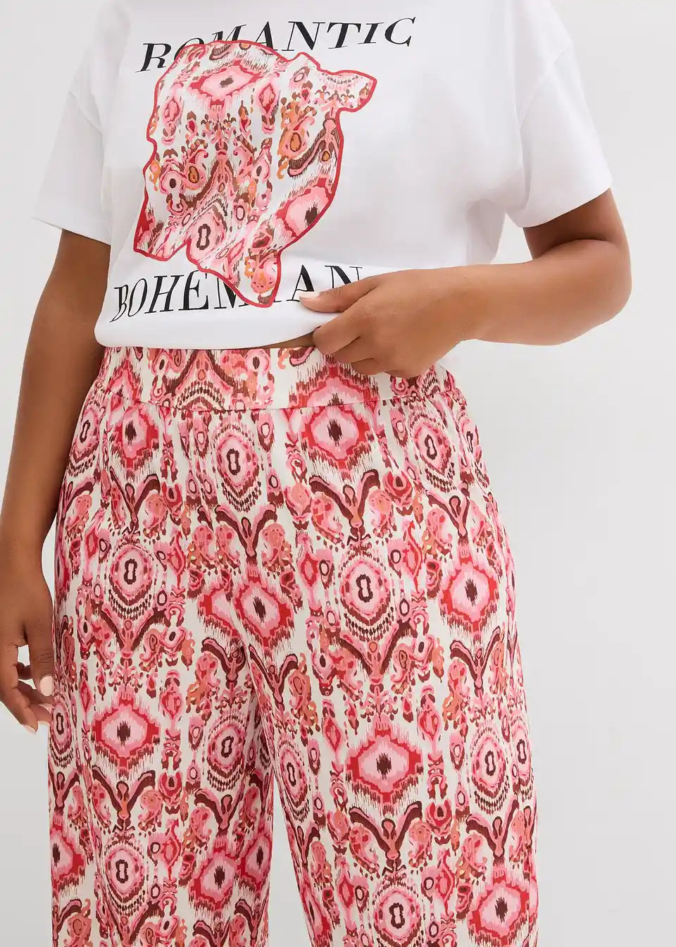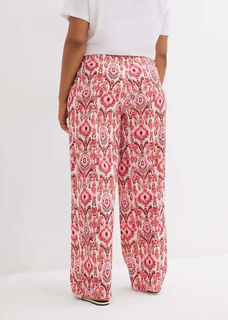 Modne hlače brez zapenjanja iz strukturiranega Crêpa z potiskom