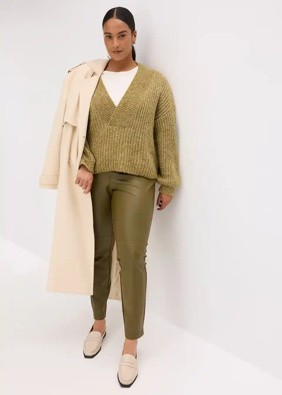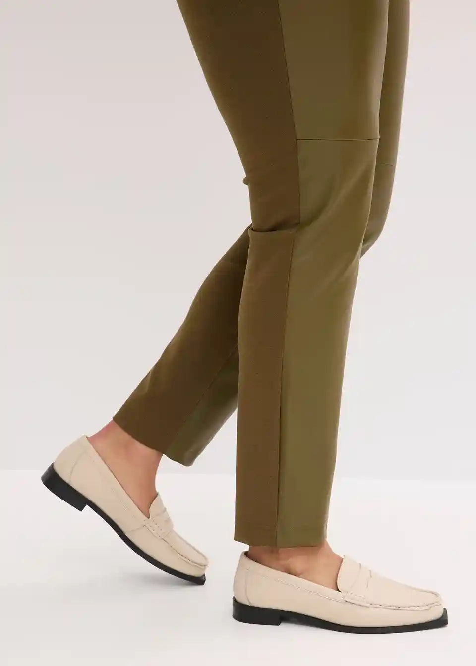 Oprijete hlače iz umetnega usnja v sprednjem delu in težkega stretcha zadaj