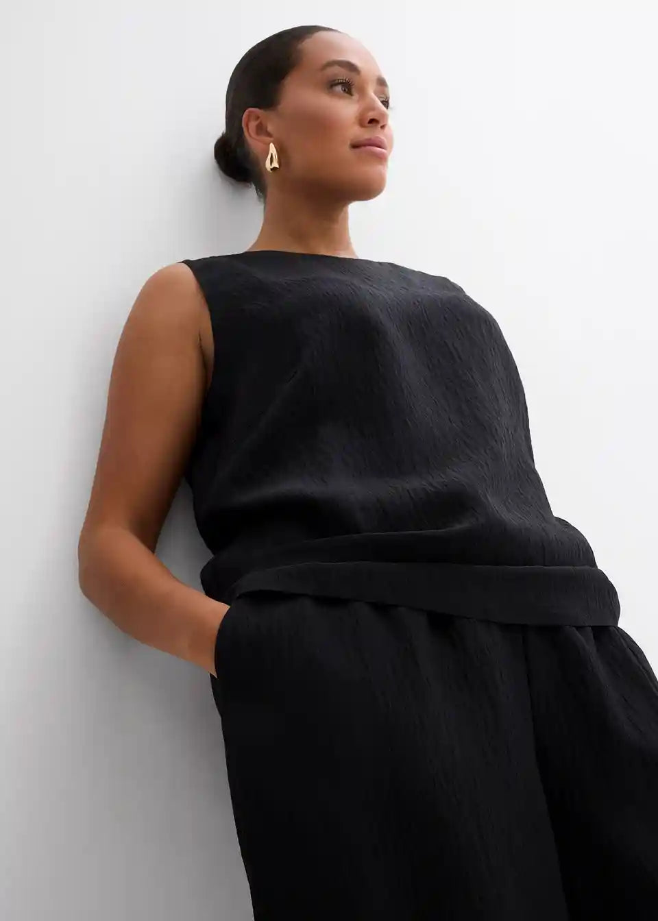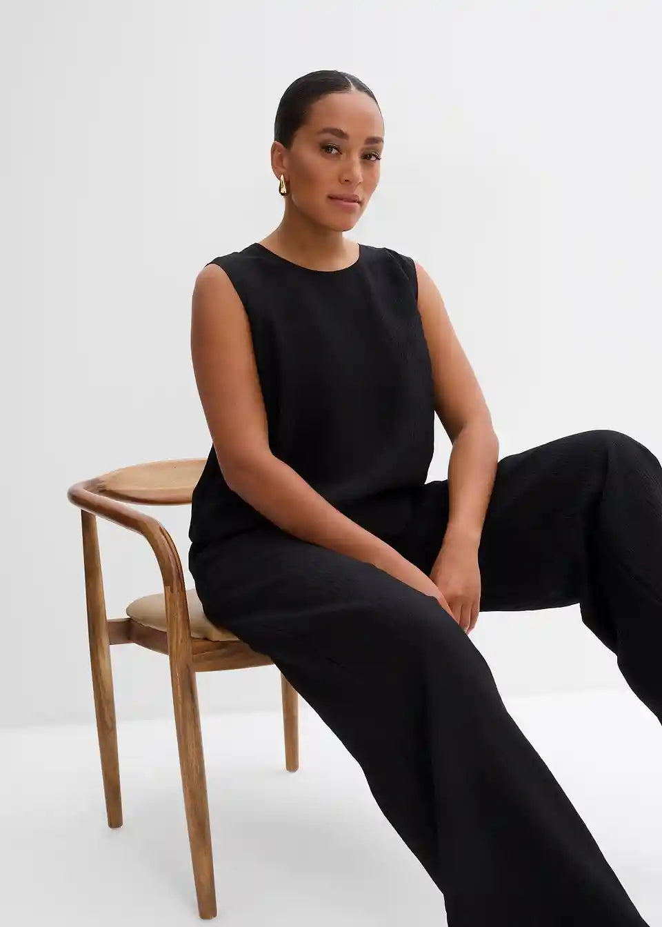 Hlače iz strukturirane mečkanke z deležem viskoze