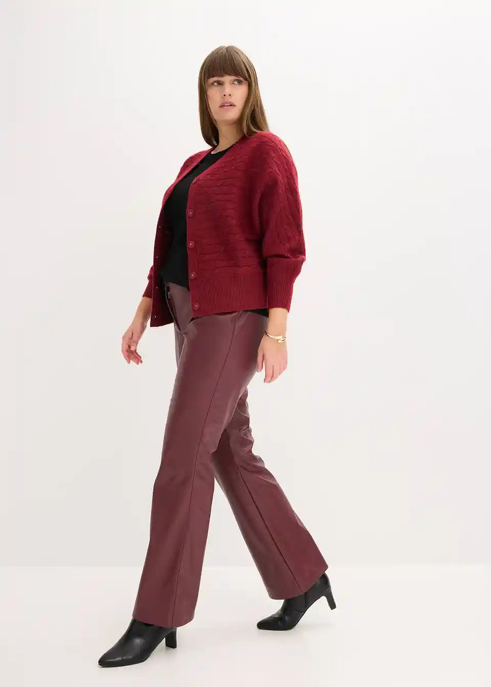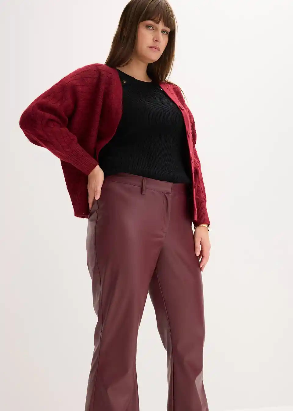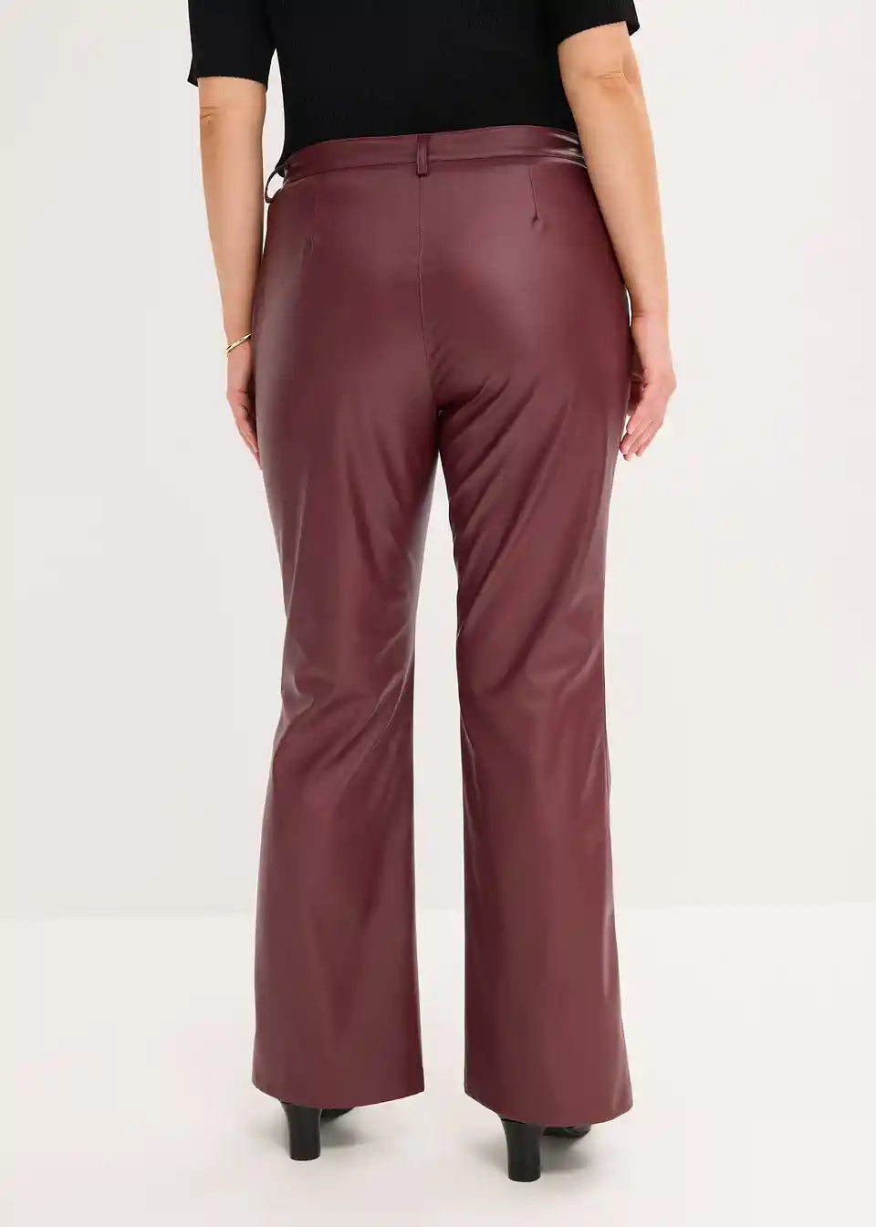 Modne hlače iz umetnega usnja s širokimi hlačnicami