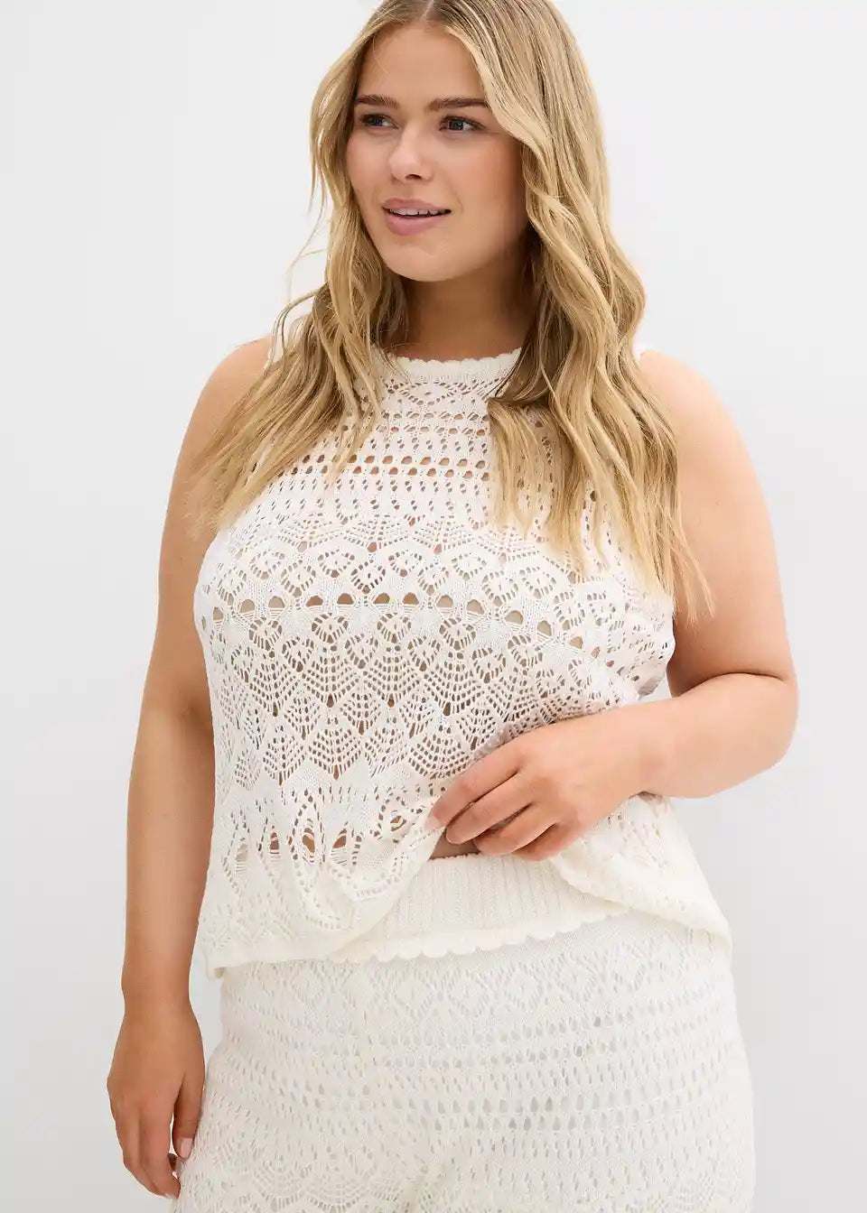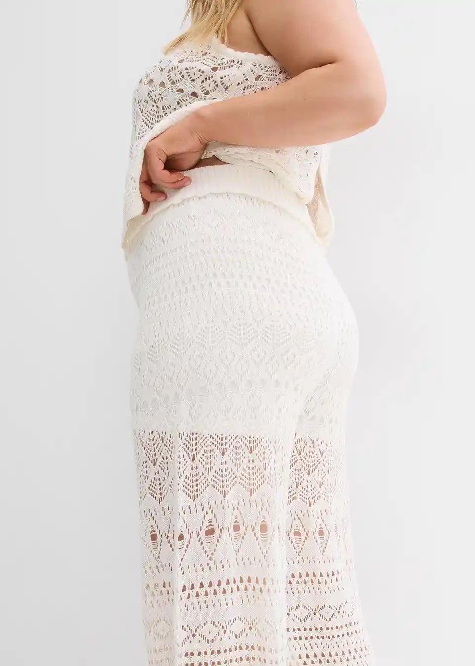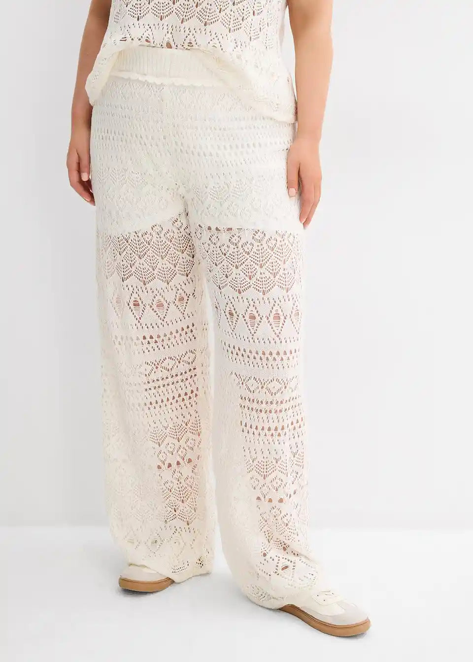 Hlače brez zapenjanja z luknjičasto pletenim vzorcem