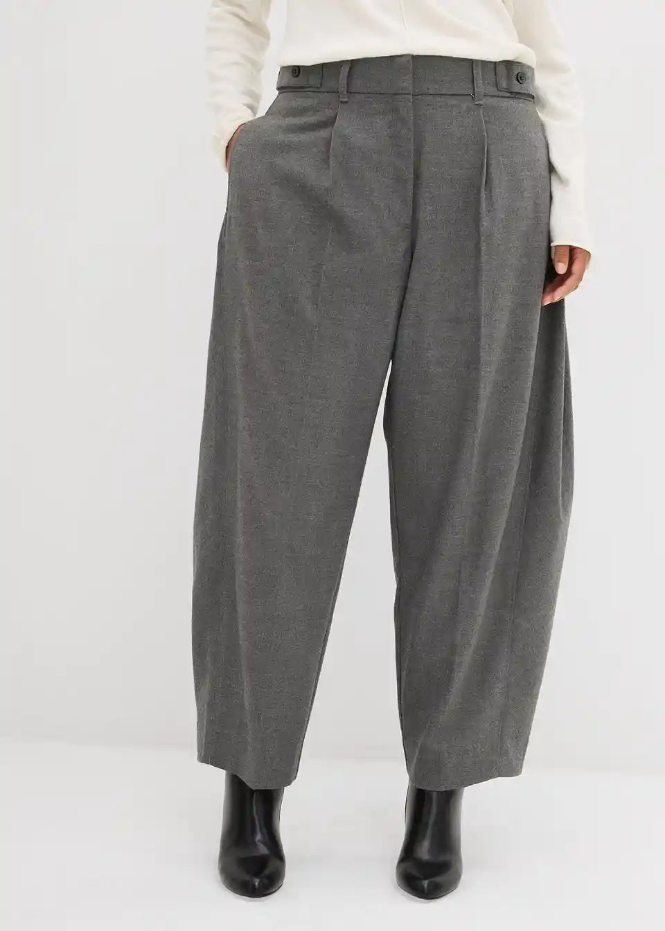 Balonaste hlače z gubami v pasu spredaj ter delno elastičnim nastavljivim pasom
