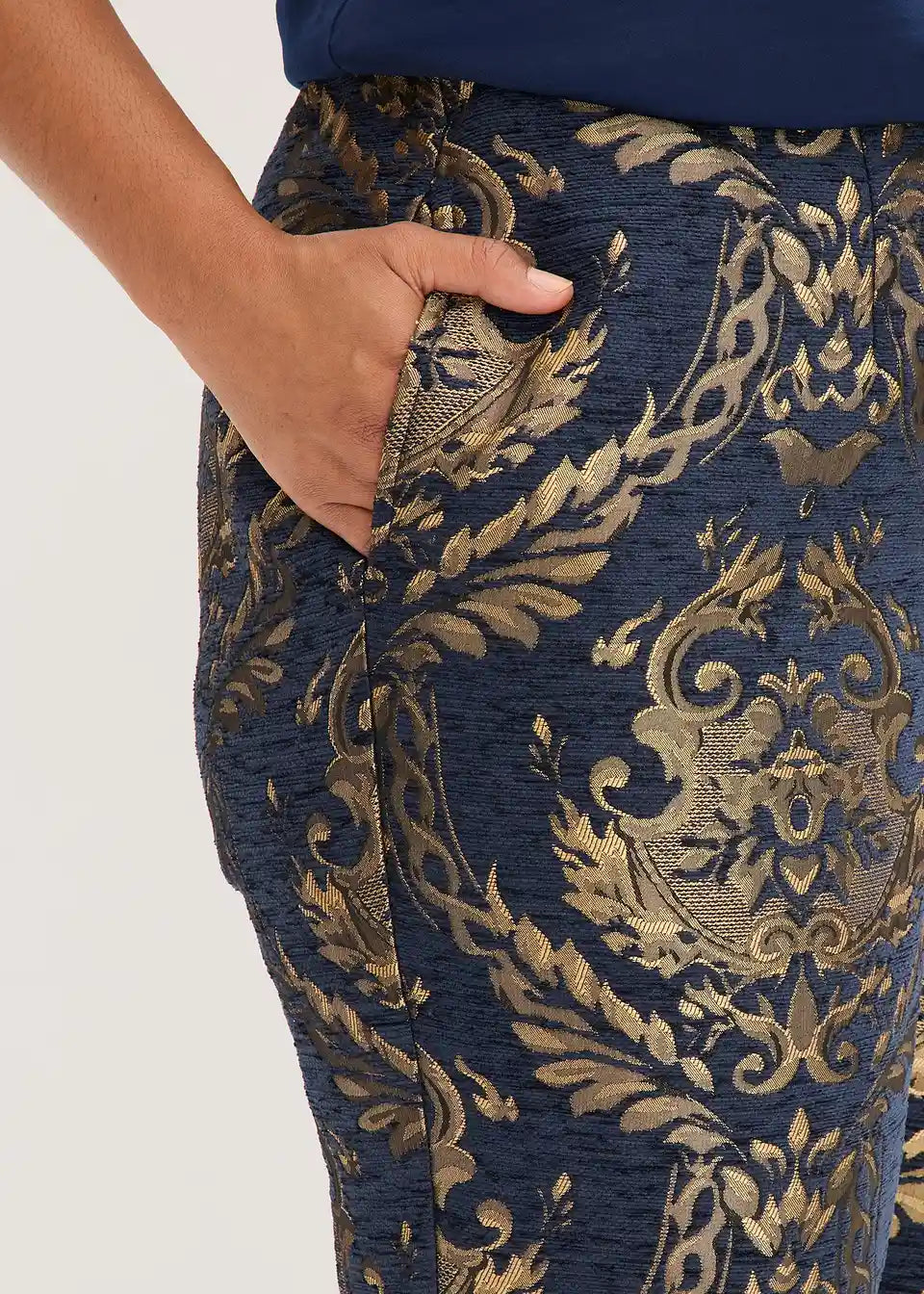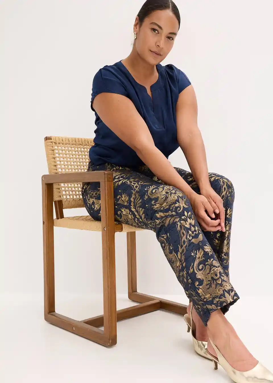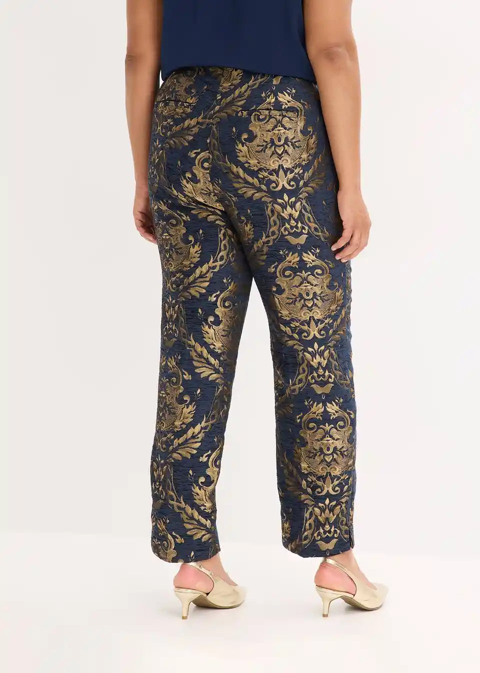 Moderne in ženstvene dolge žakarske hlače iz sijočega materiala