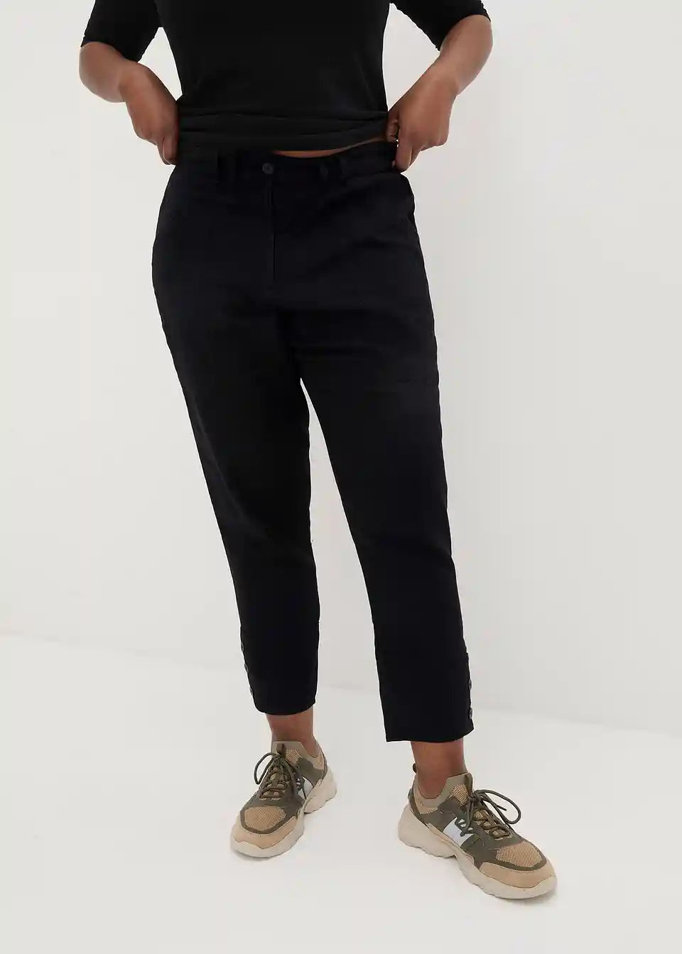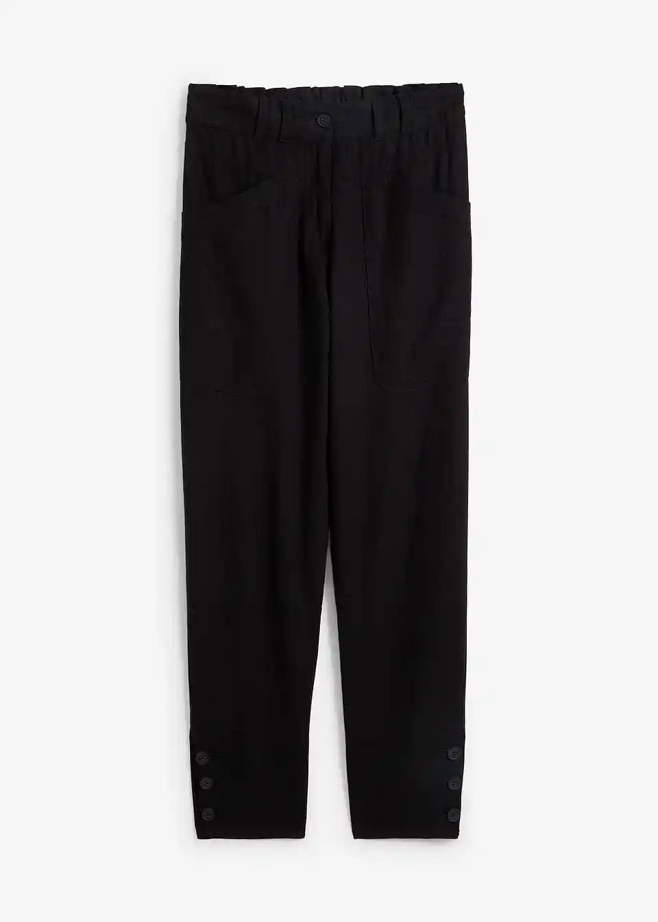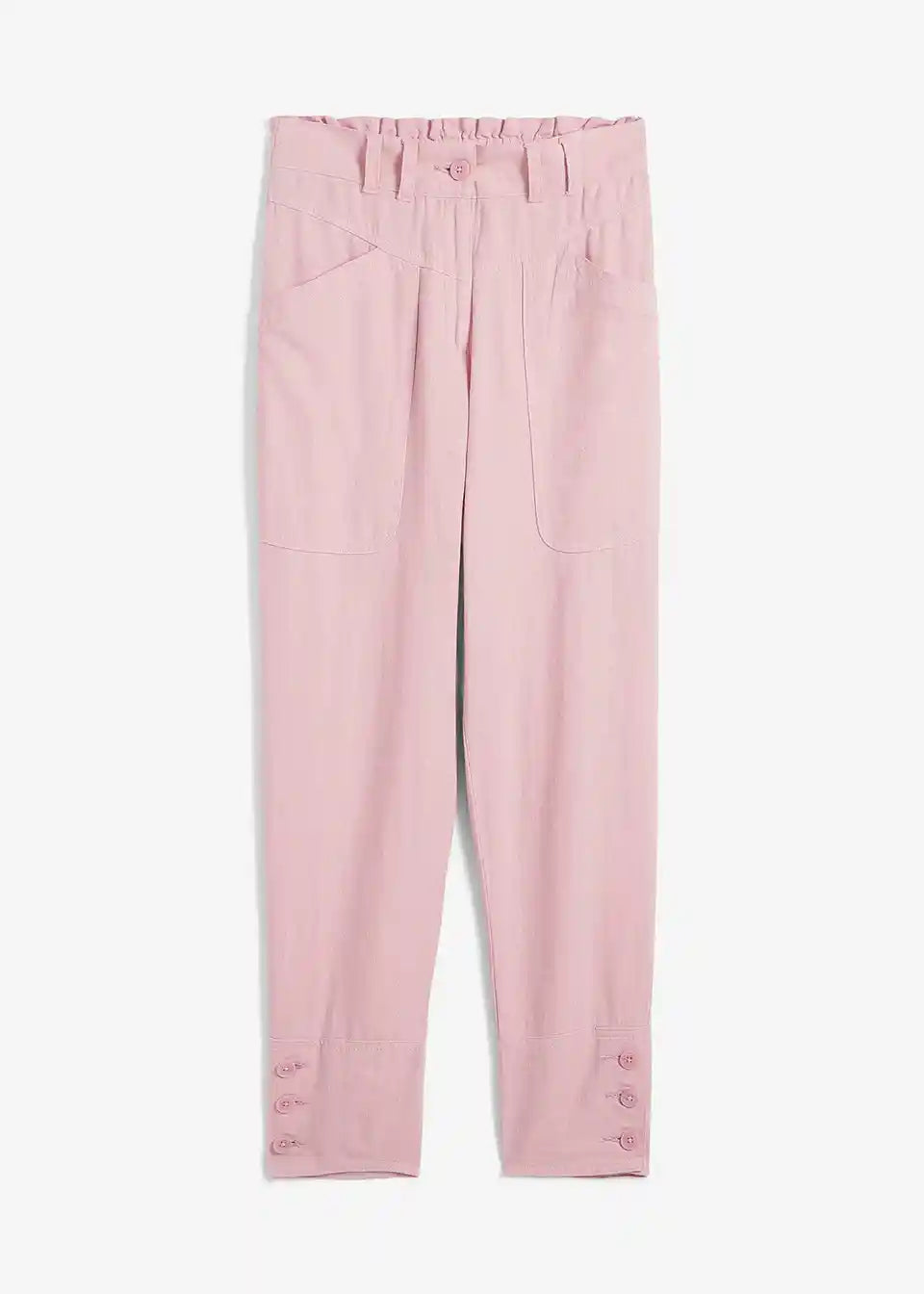 Platnene hlače z detajli žepov in gumbi na spodnjem robu