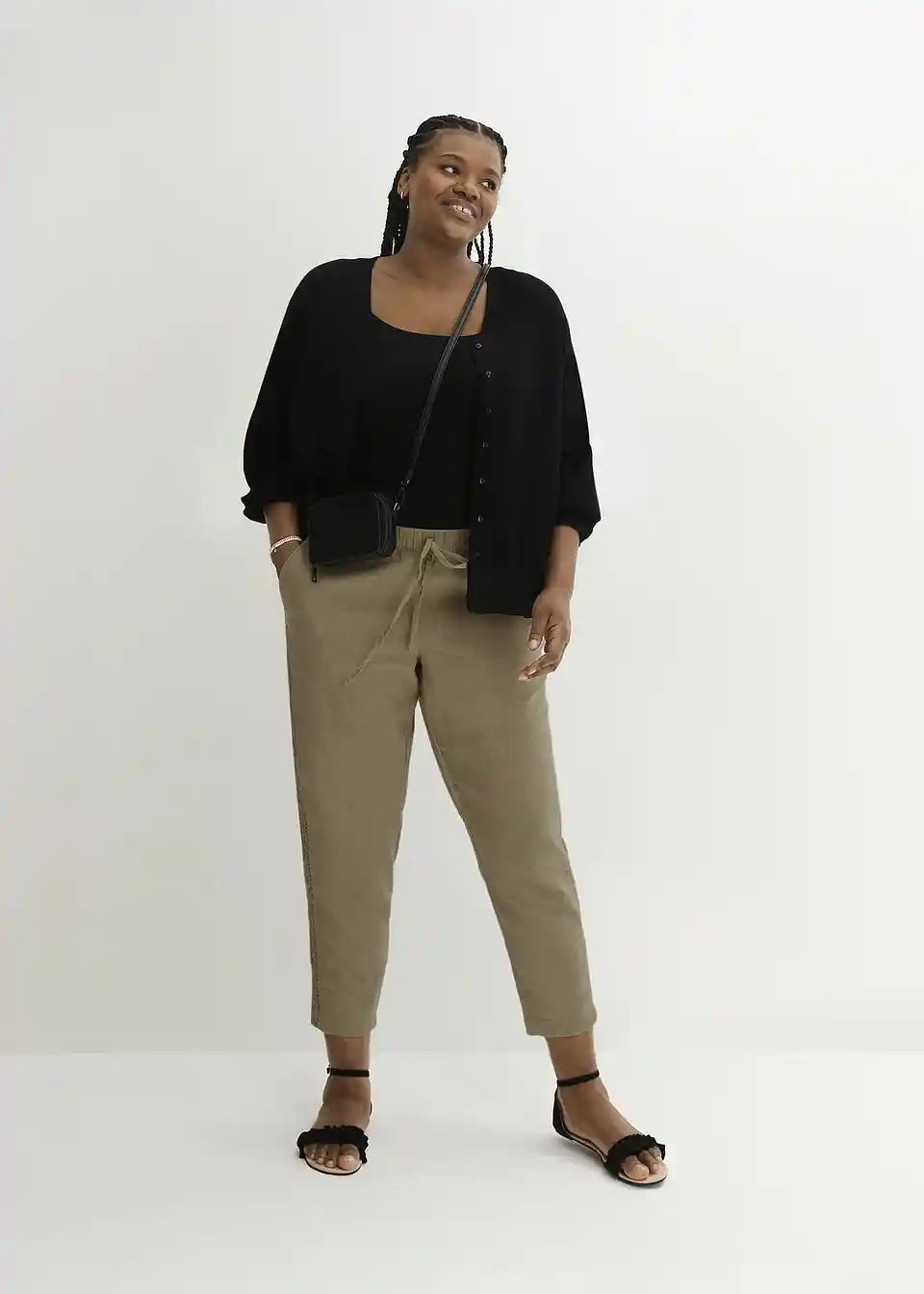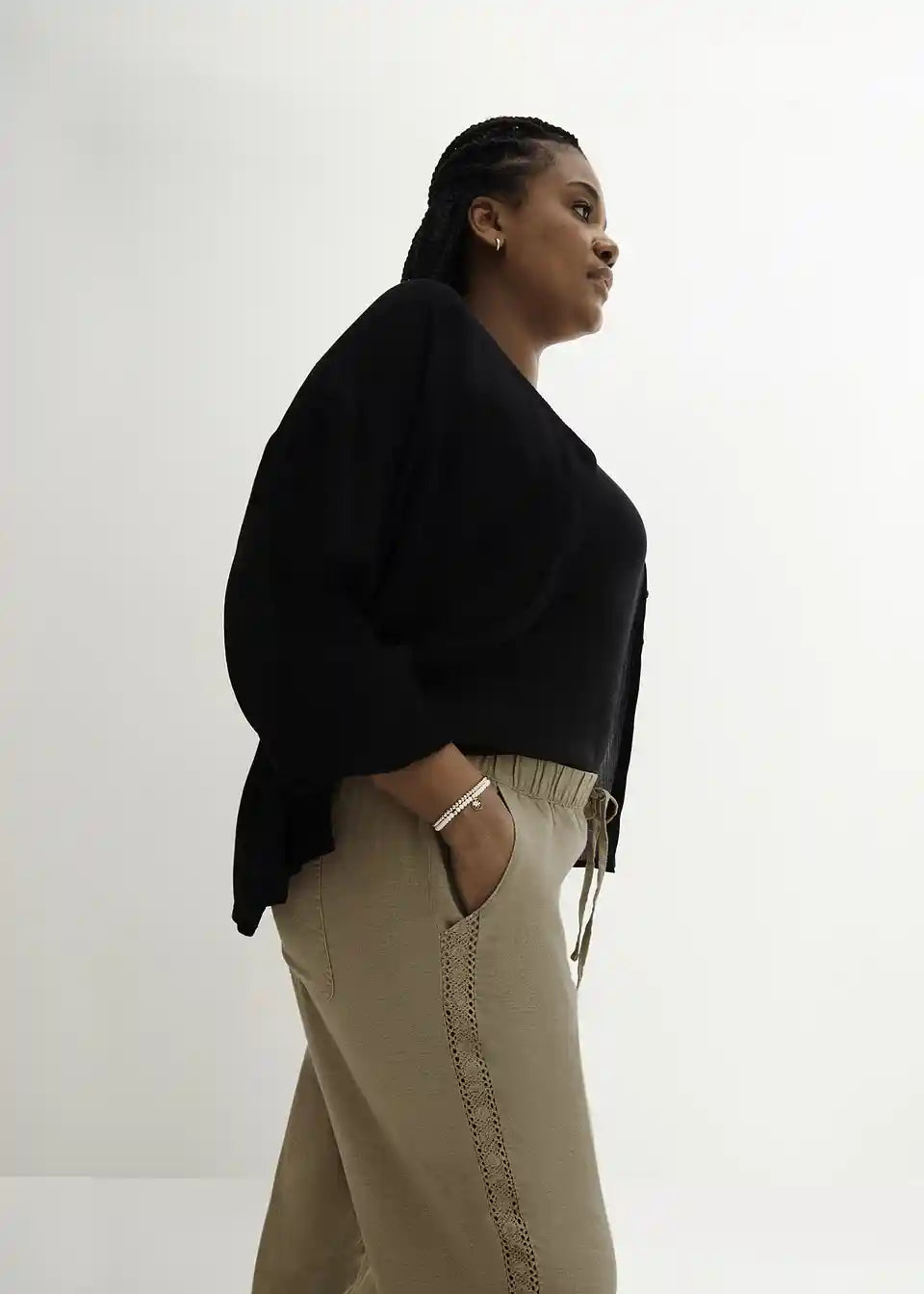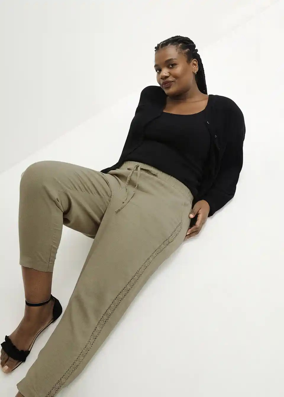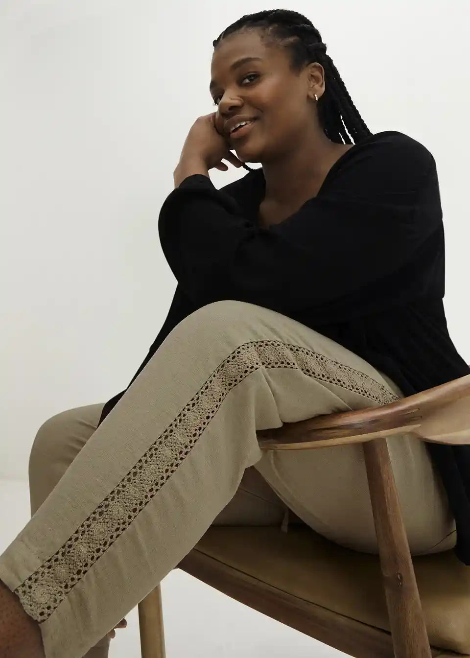 Udobne lanene hlače s praktičnimi žepi in čipkastimi detajli