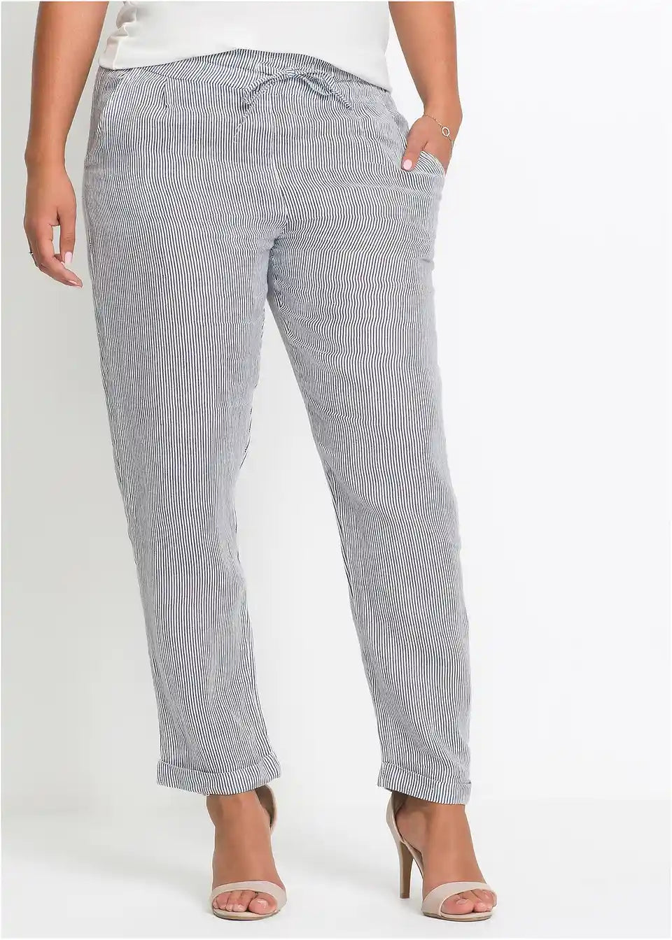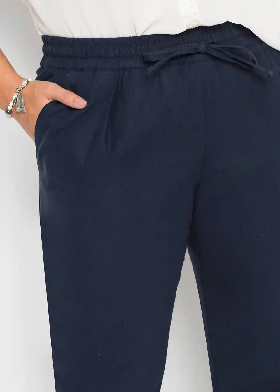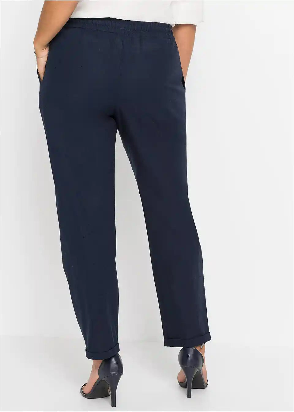 Feminine lanene hlače z elastičnim pasom in zavihanim robom