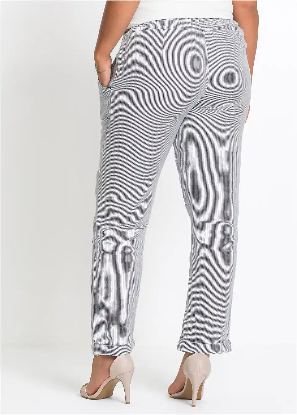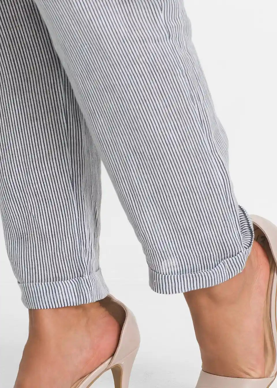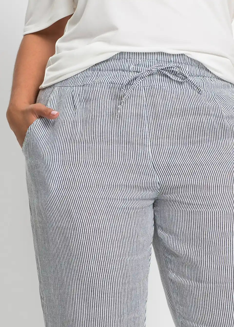 Feminine lanene hlače z elastičnim pasom in zavihanim robom