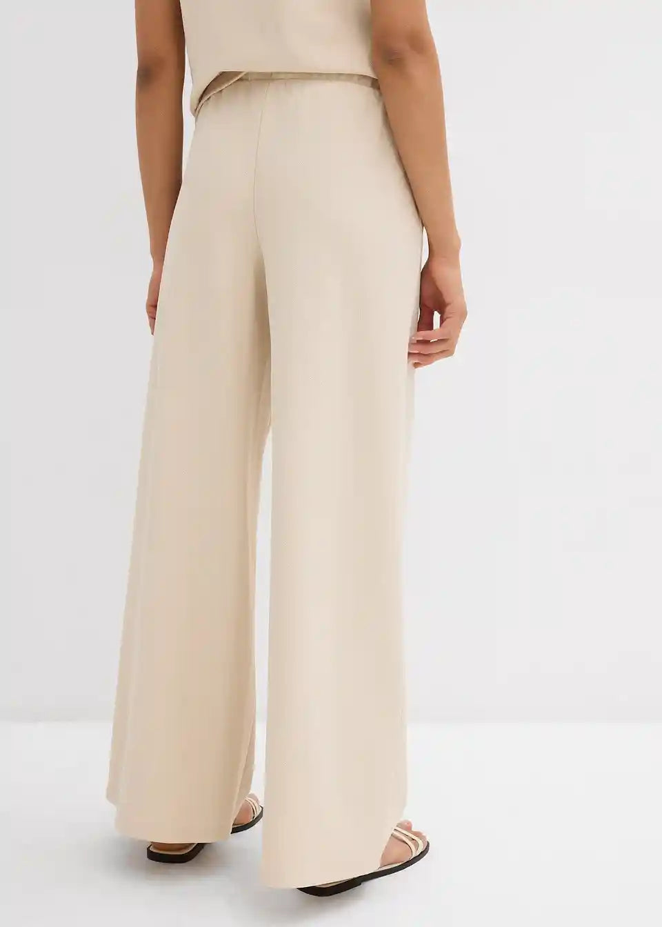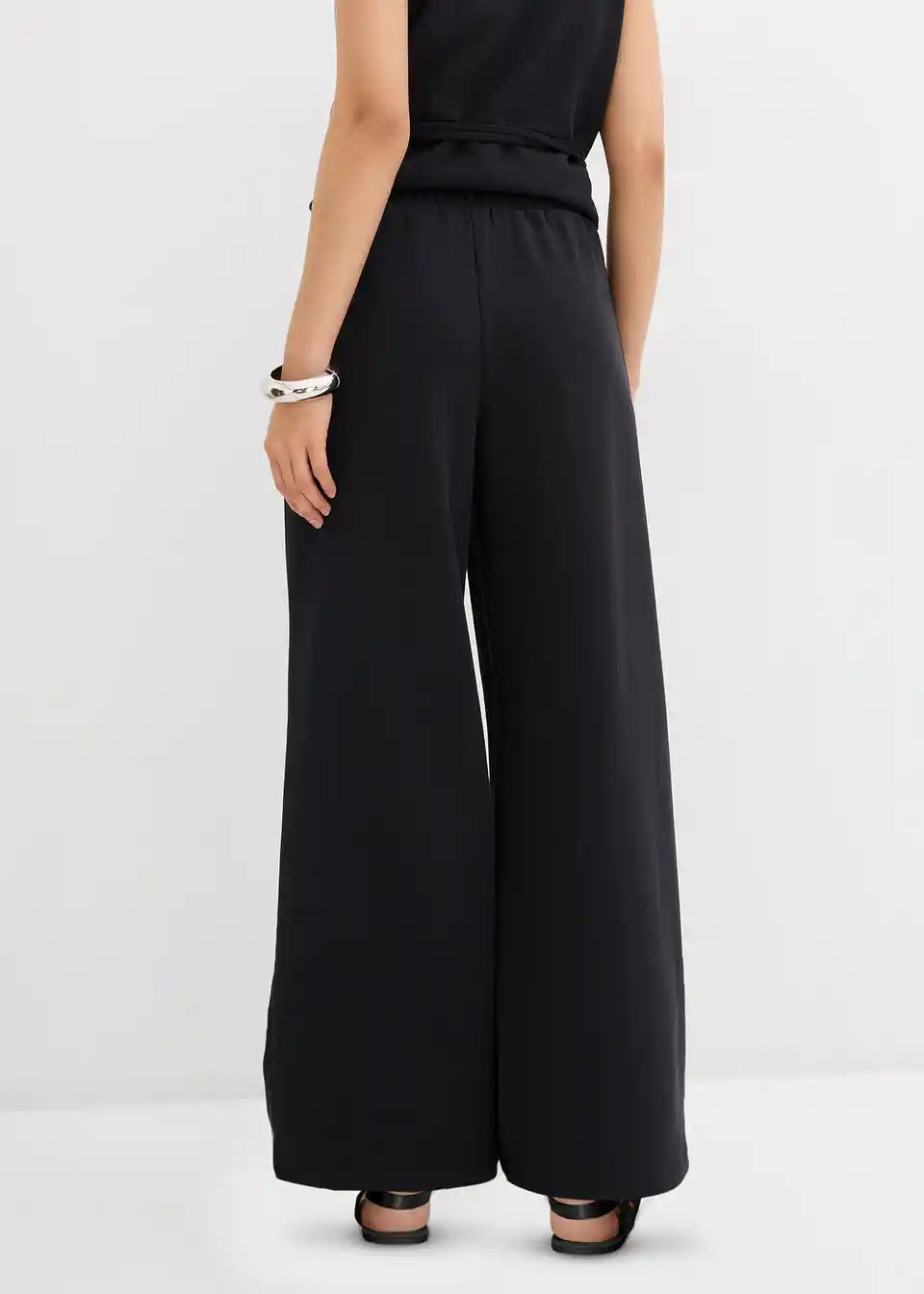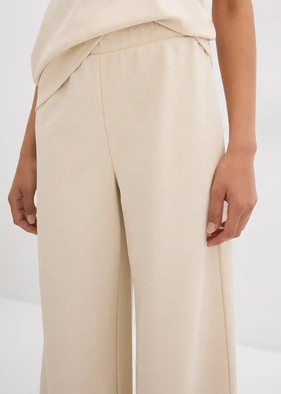 Široke hlače z visokim elastičnim pasom ter stranskimi všitimi žepi.