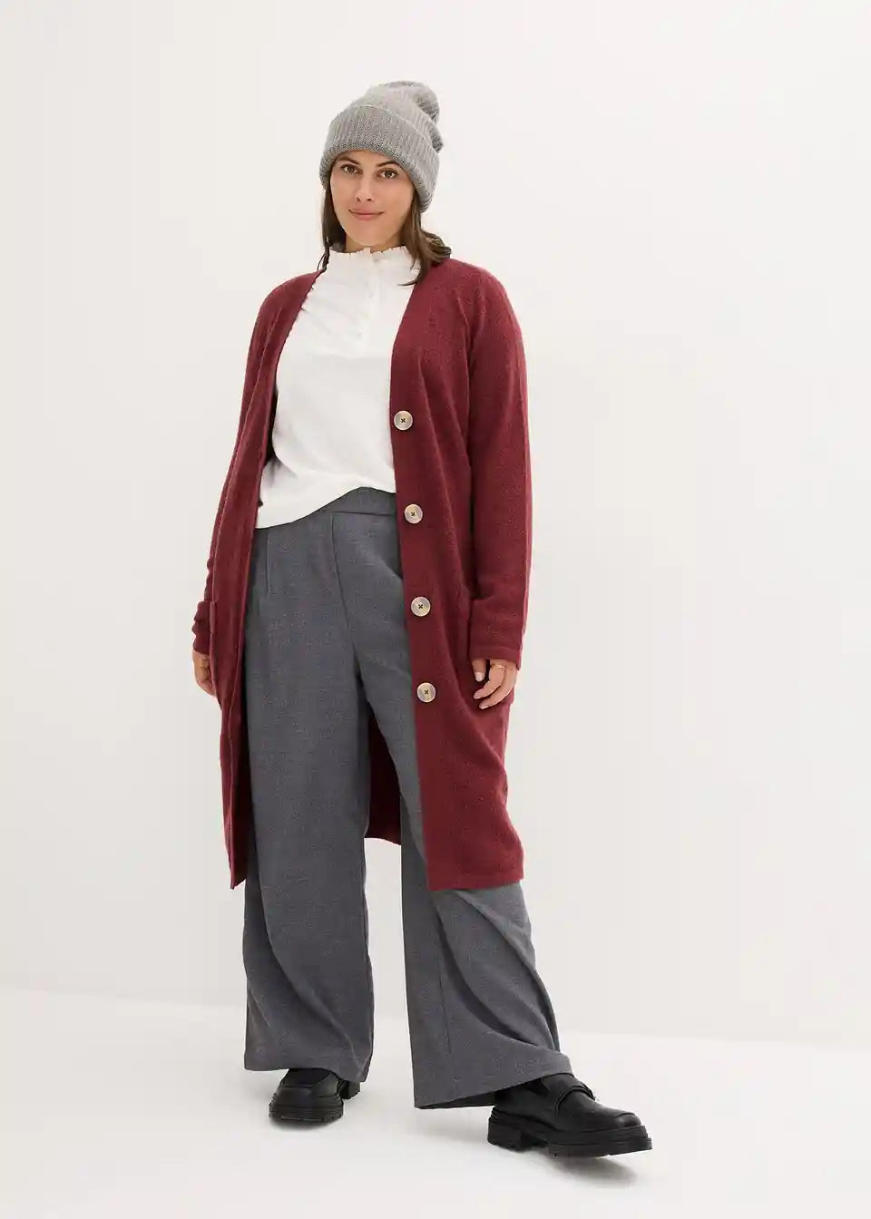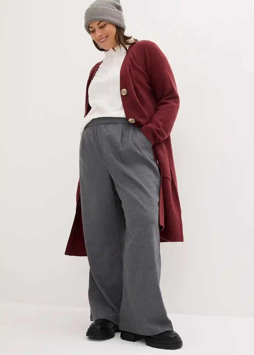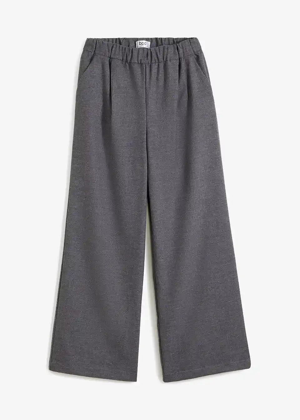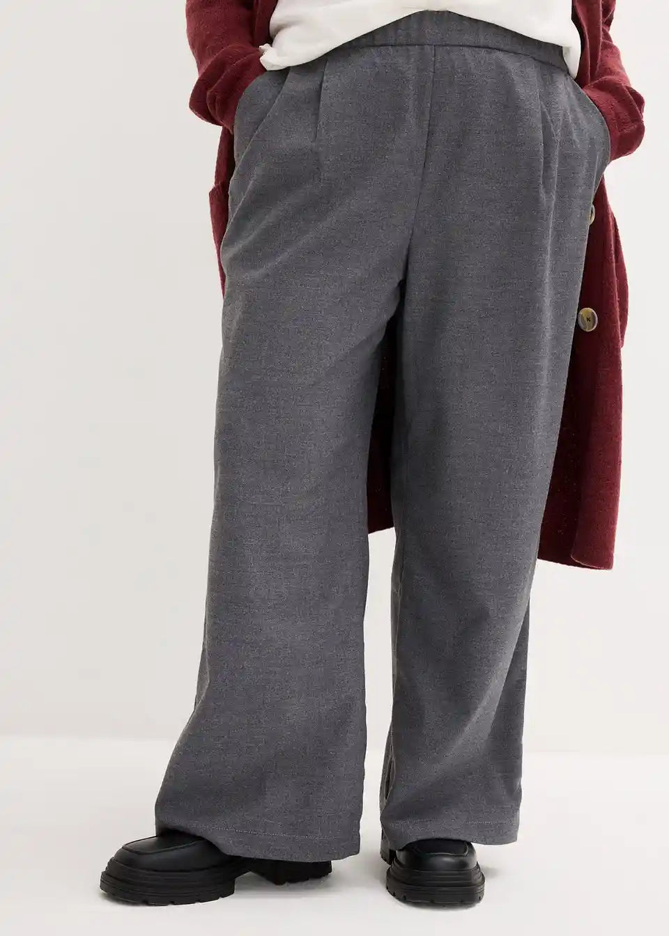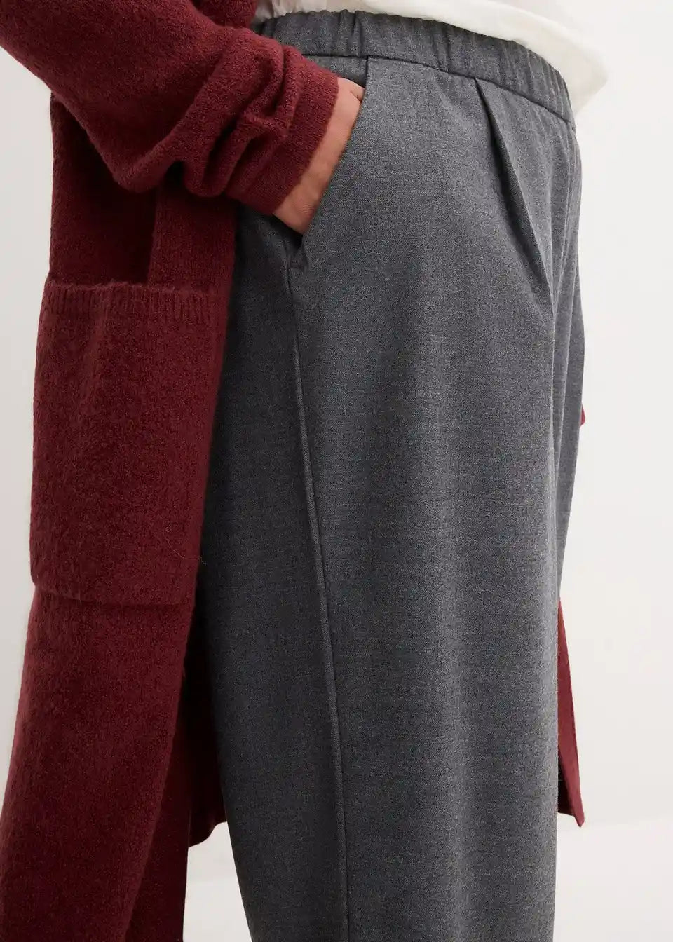 Udobne hlače z elastiko v pasu v videzu sol in poper