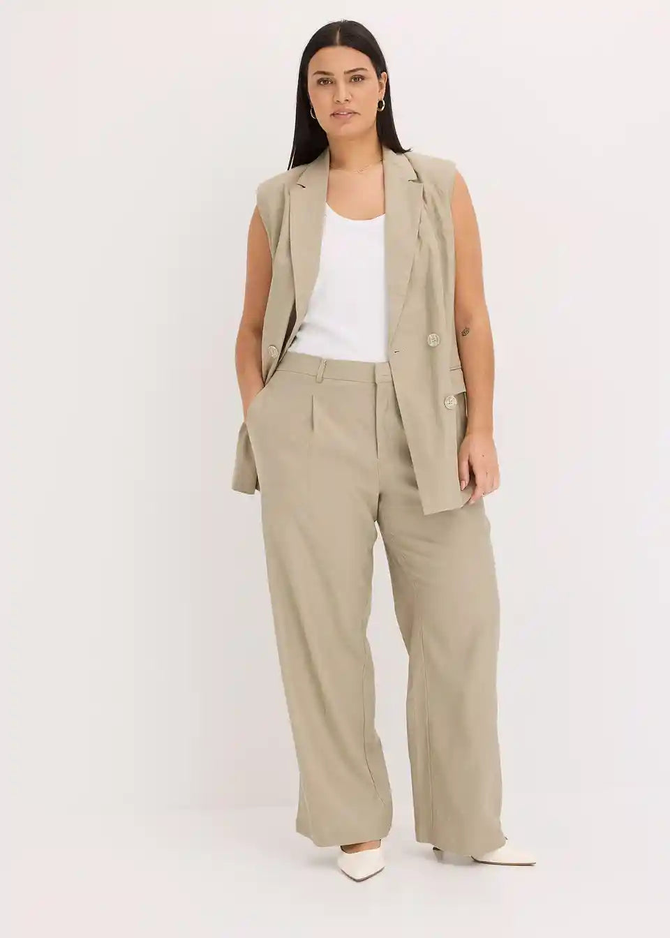 Poletne lanene hlače z širokimi hlačnicami