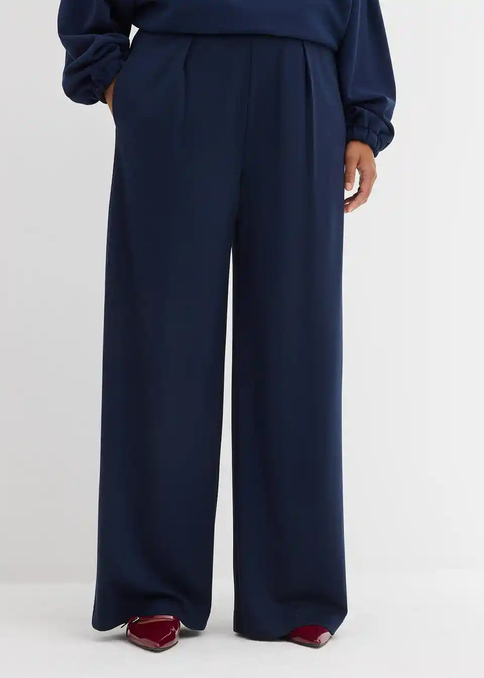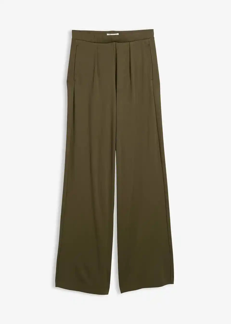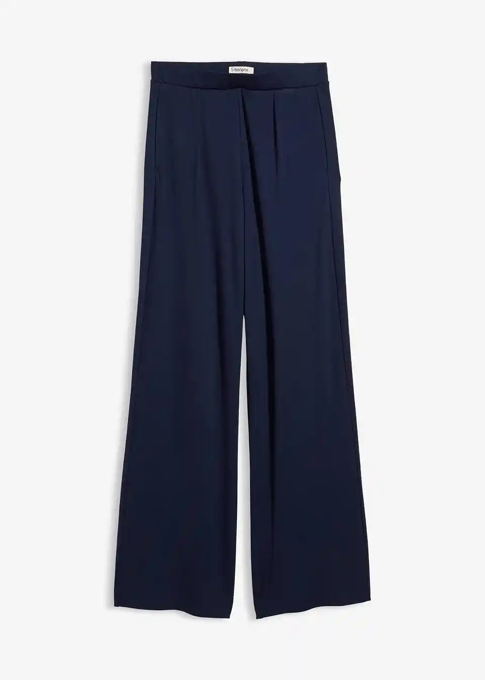 Hlače s širokimi hlačnicami, z gubami in elastičnim pasom