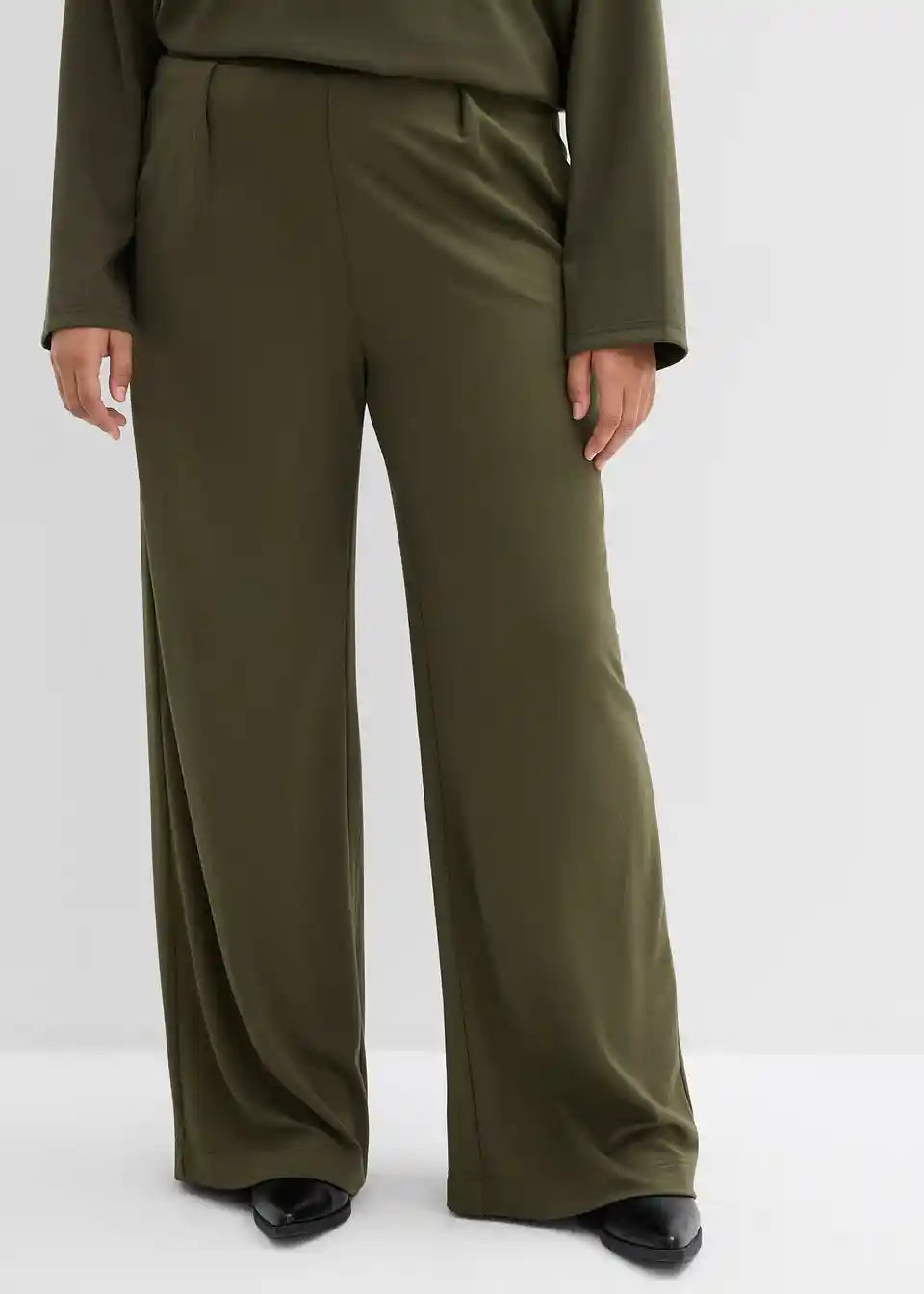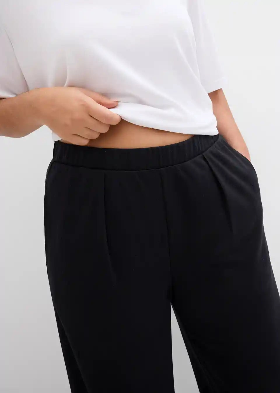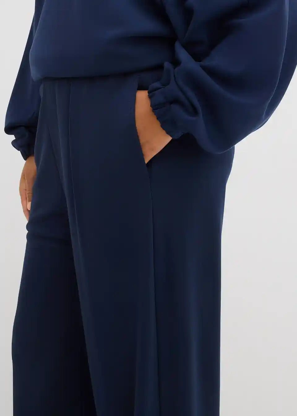 Hlače s širokimi hlačnicami, z gubami in elastičnim pasom