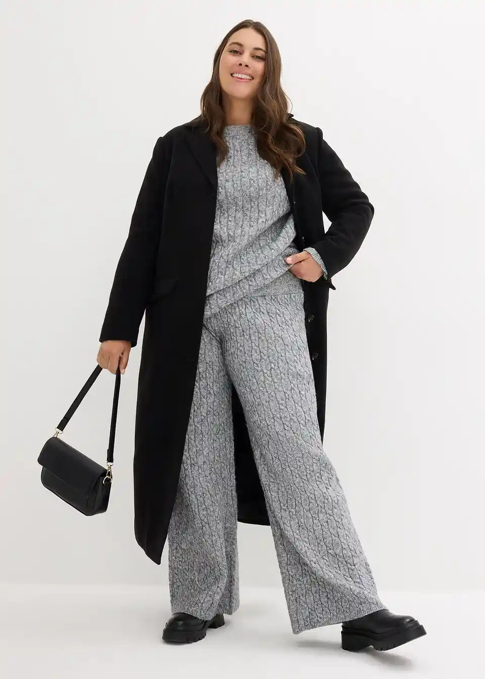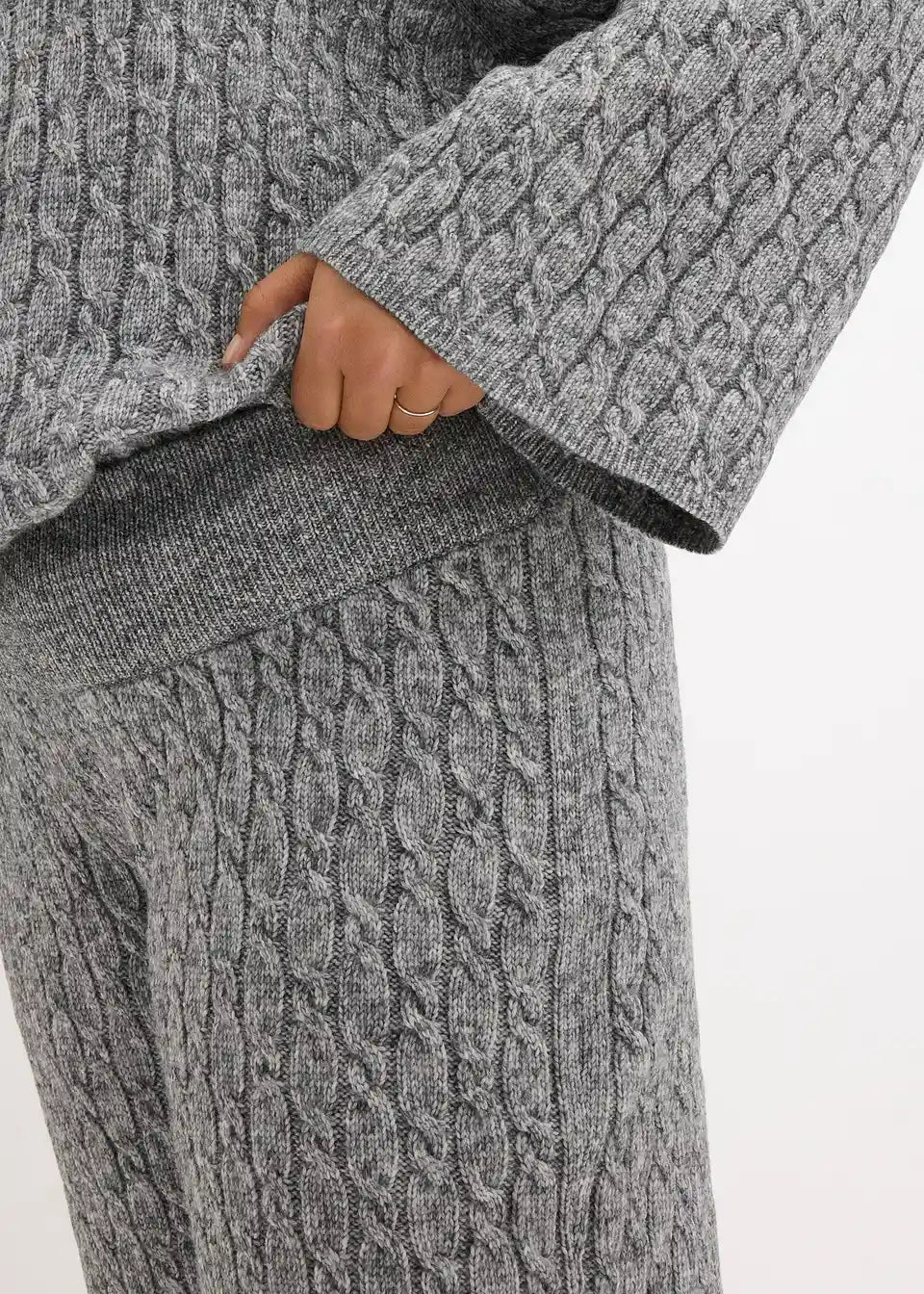 Ohlapne, udobne pletenaste hlače z vzorcem pletenice