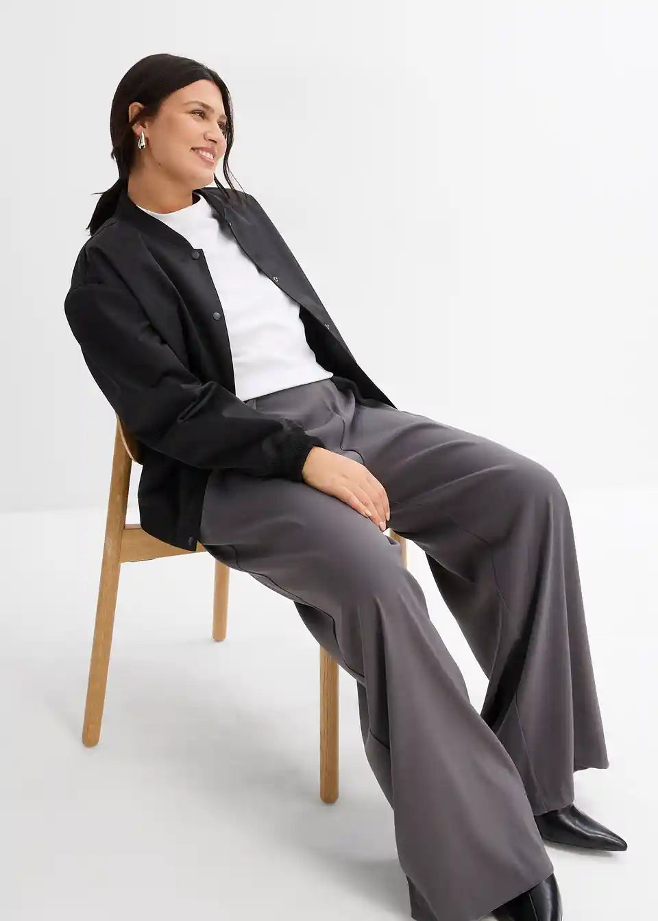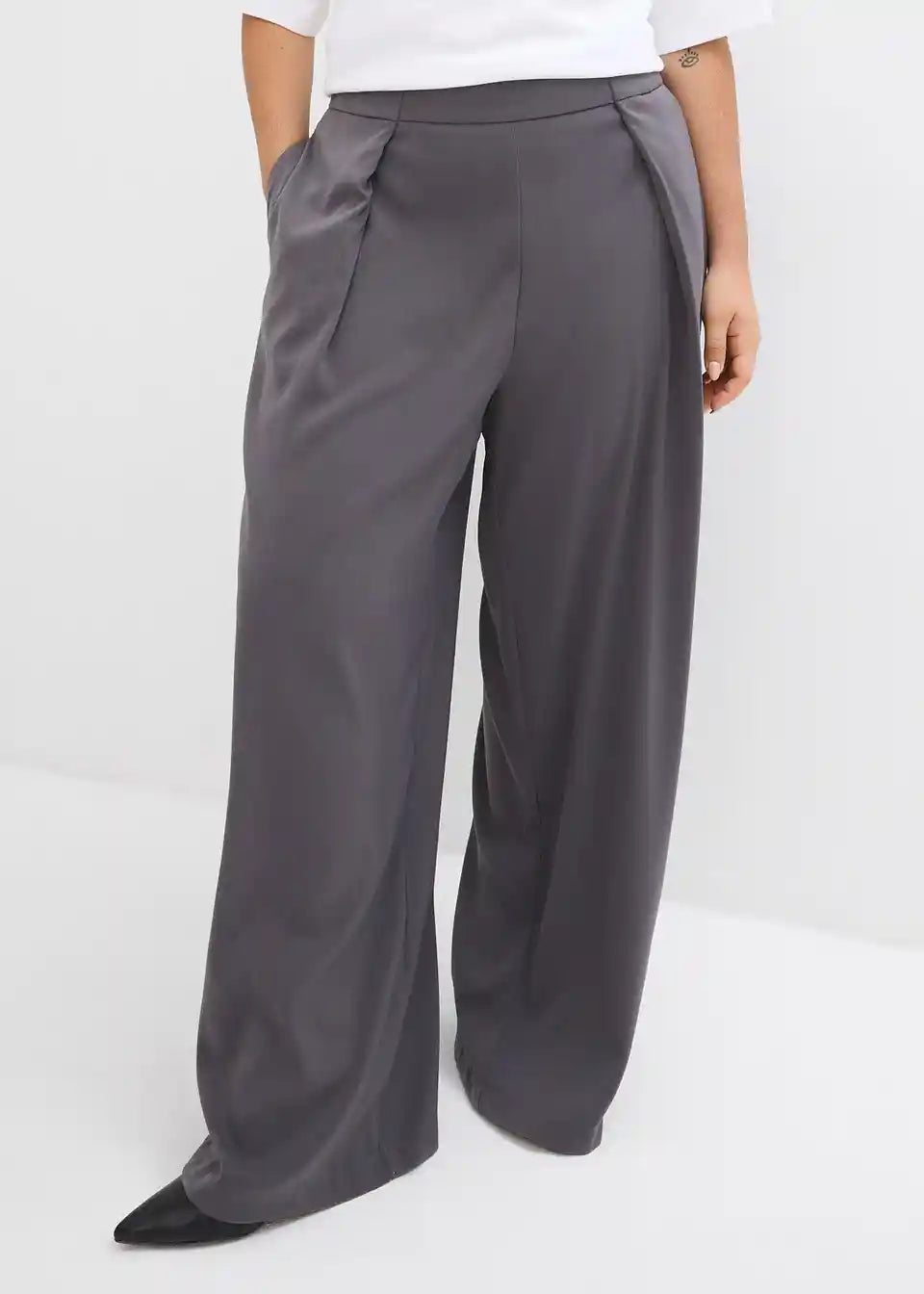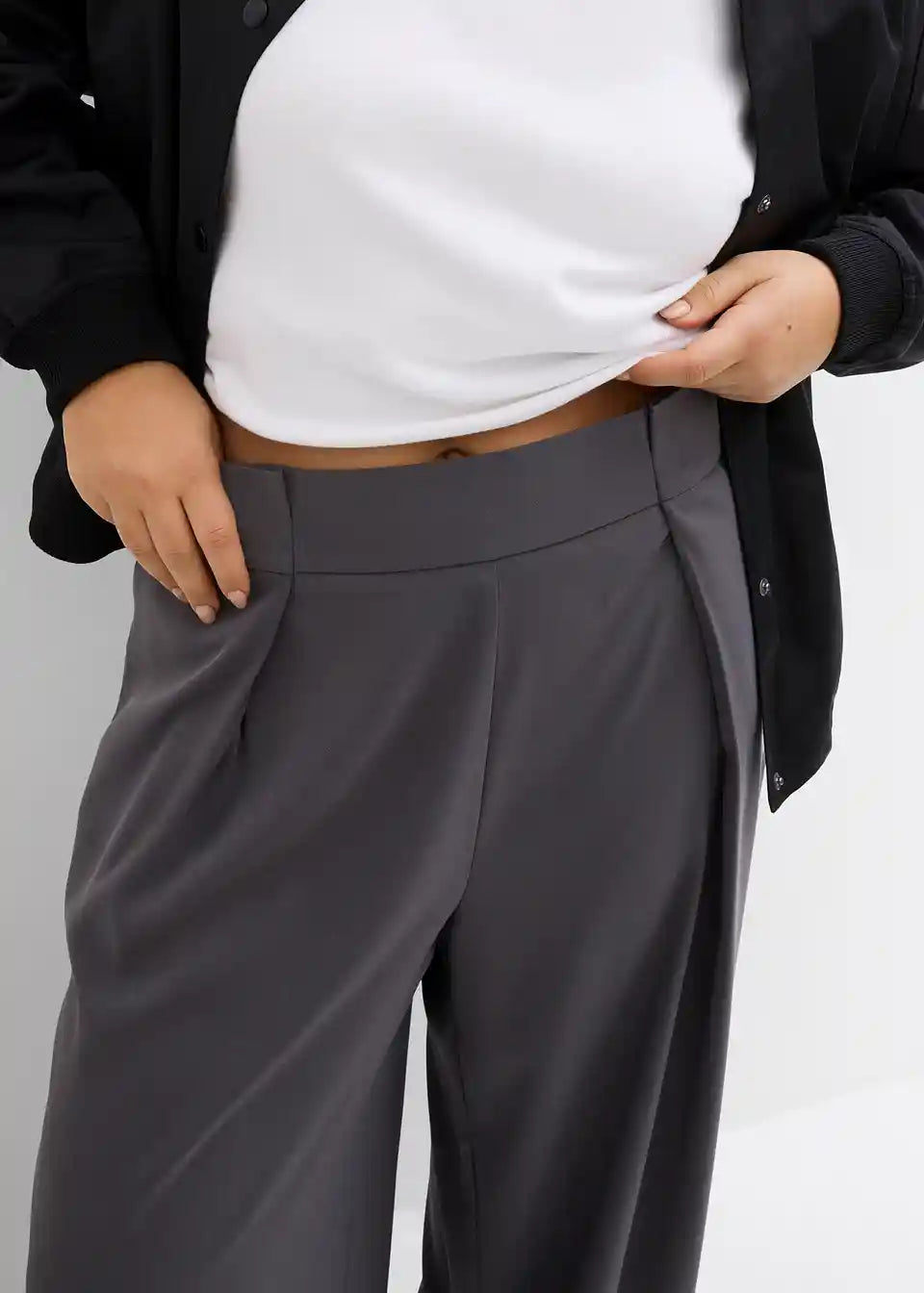 Hlače z razširjenim spodnjim robom in gubami v pasu