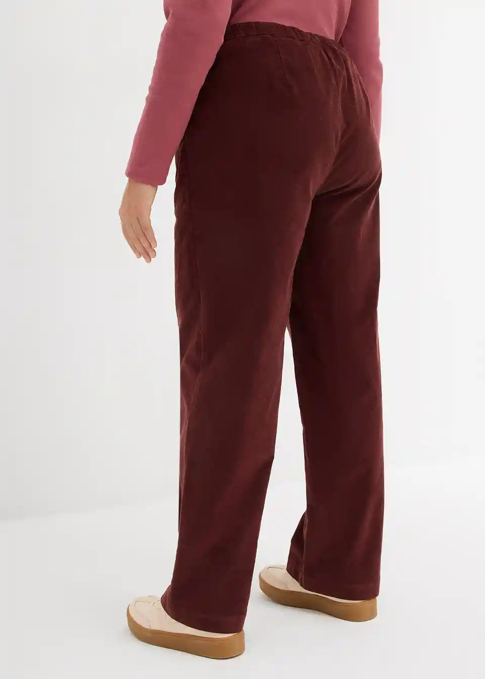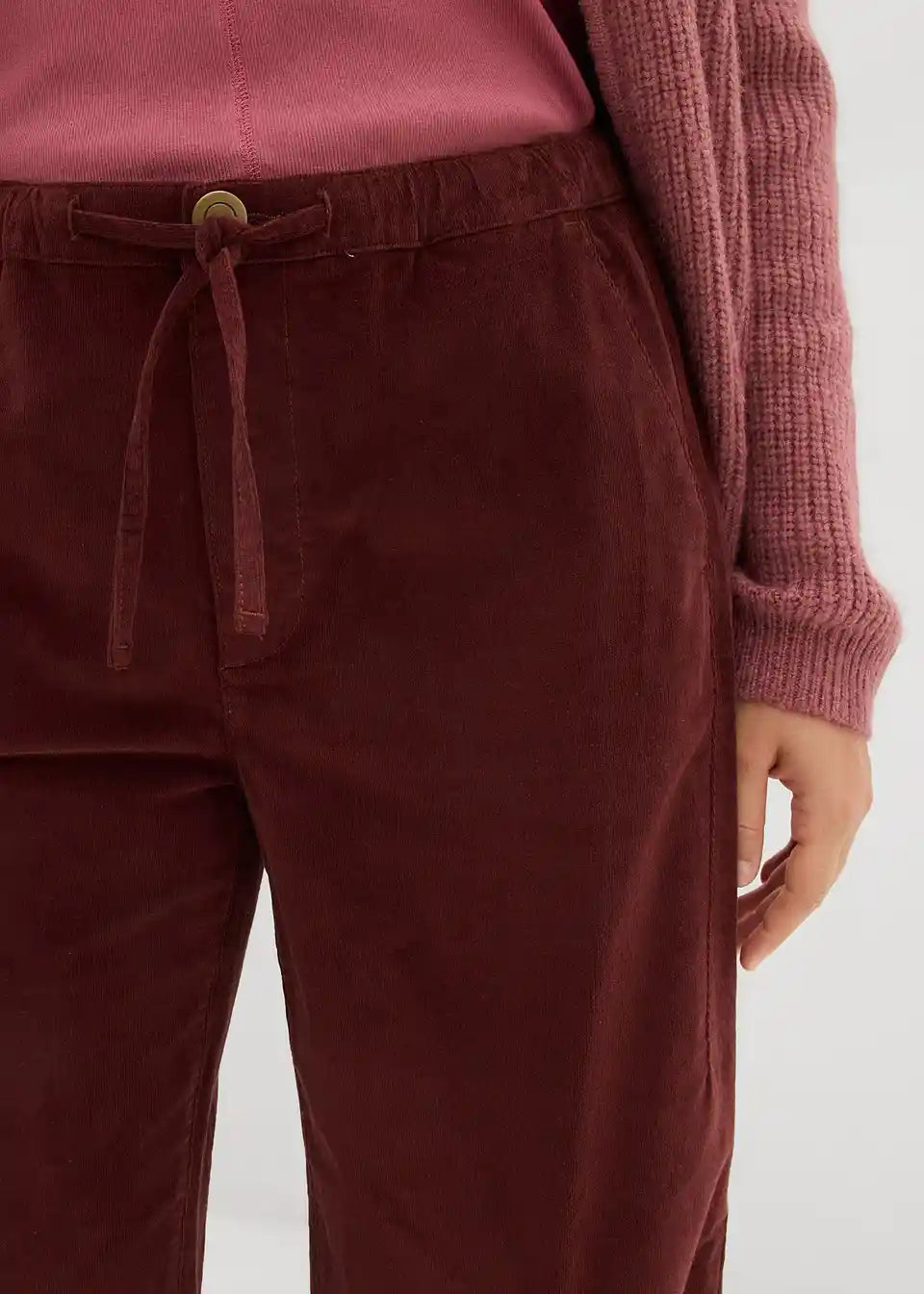 Hlače iz žameta z visoko krojenim elastičnim pasom in detajli vezalk. V širokem kroju.