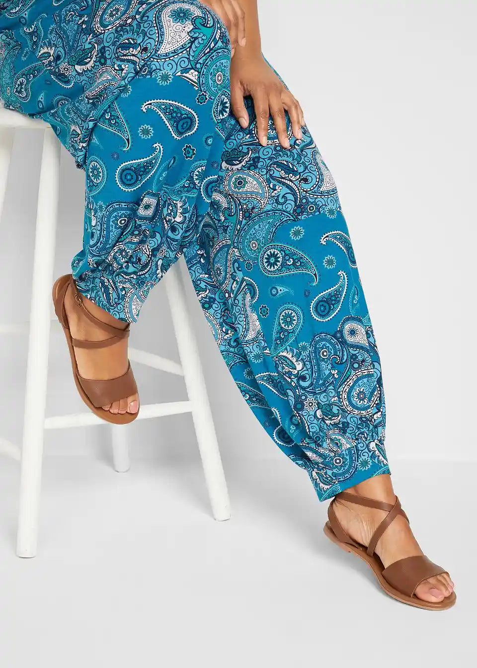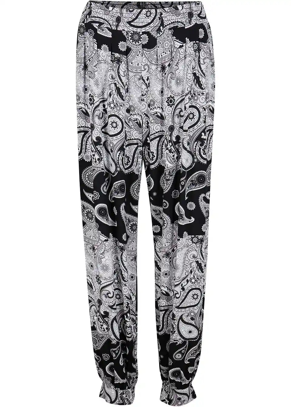 Udobne harem hlače iz jerseya z lepim paisley vzorcem in nagubanimi udobnimi pasom