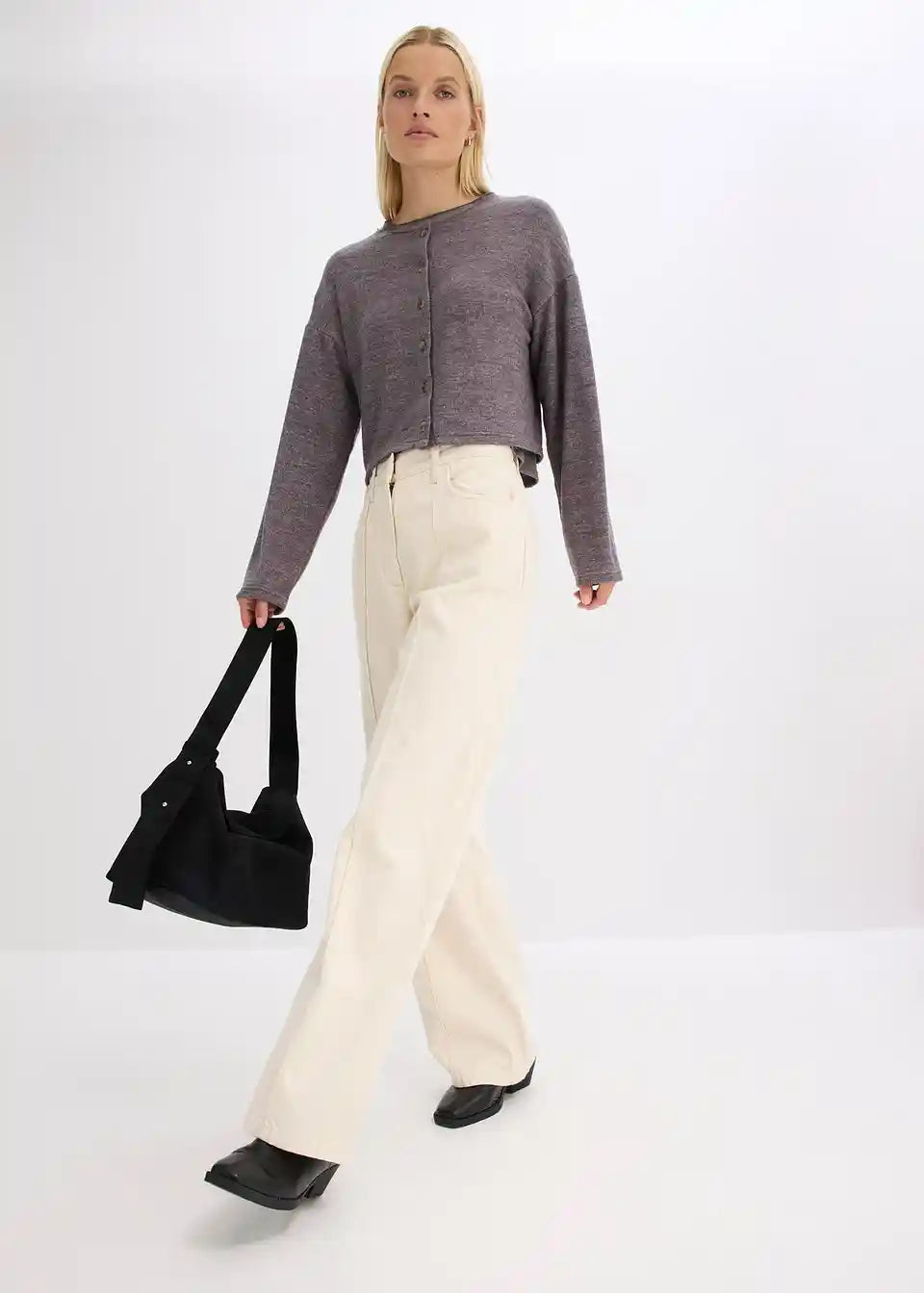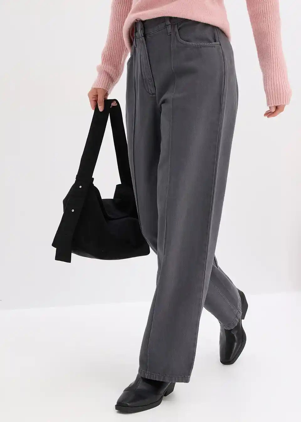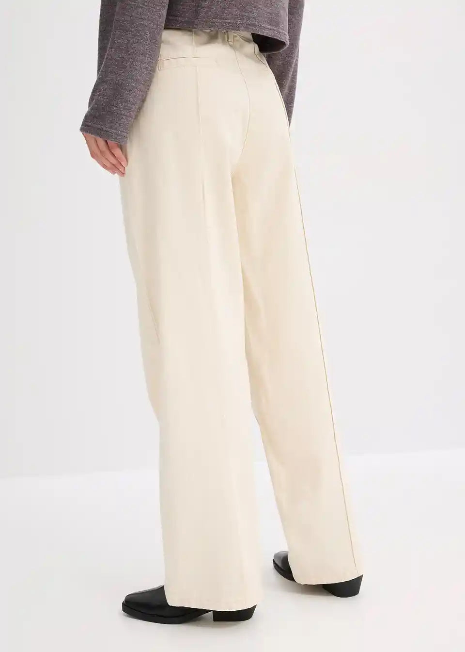 Udobne hlače iz kepra s širokimi hlačnicami in stranskimi žepi