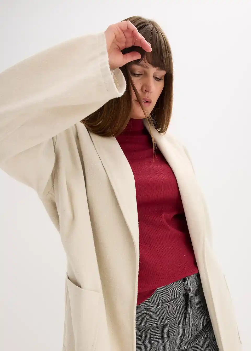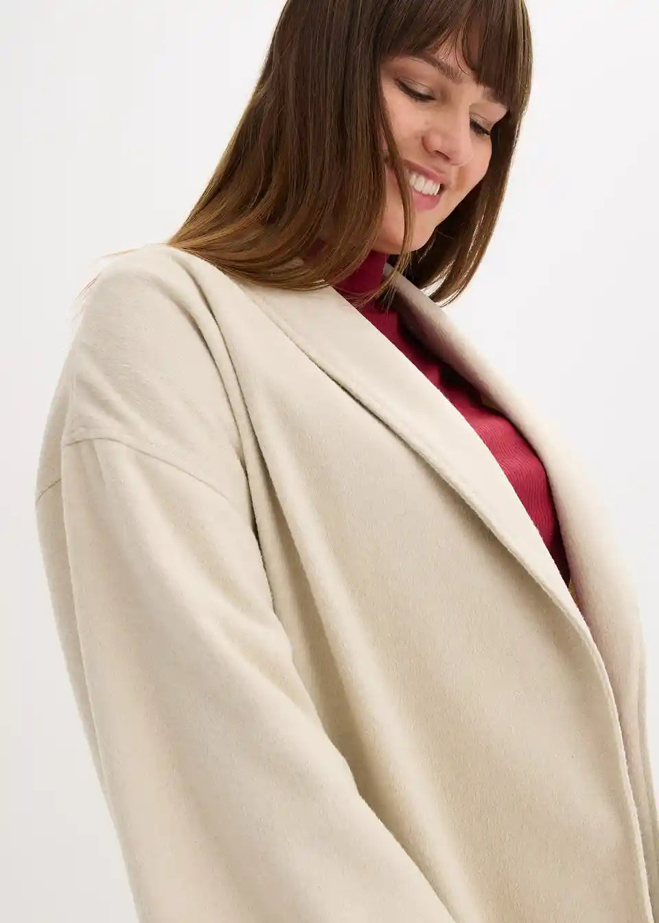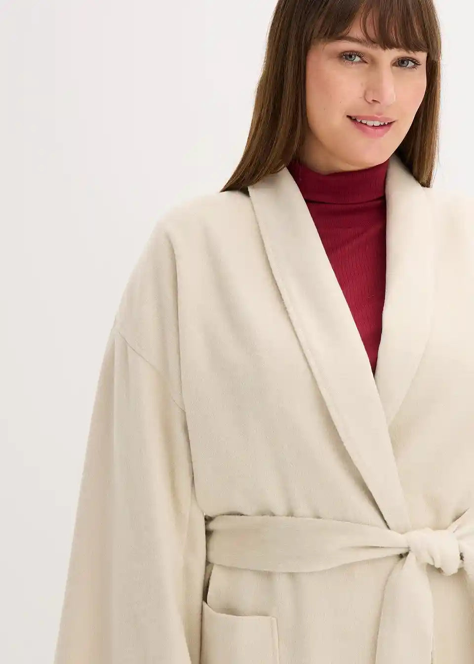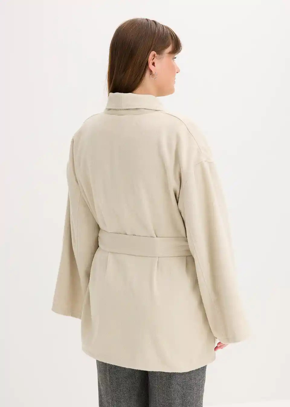 Udobna volnena jakna s trakom za zavezovanje in našitimi žepi