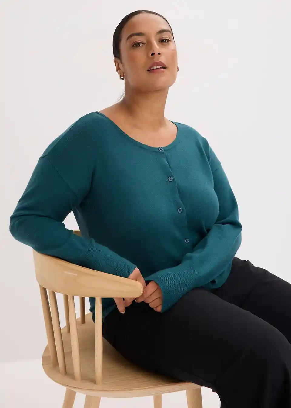 Moderna pletena jopa z zapenjanjem z gumbi