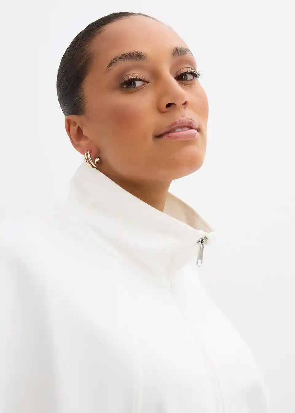 Jopa iz trikoja z zadrgo, pokončnim ovratnikom in poševnimi žepi z letvico spredaj