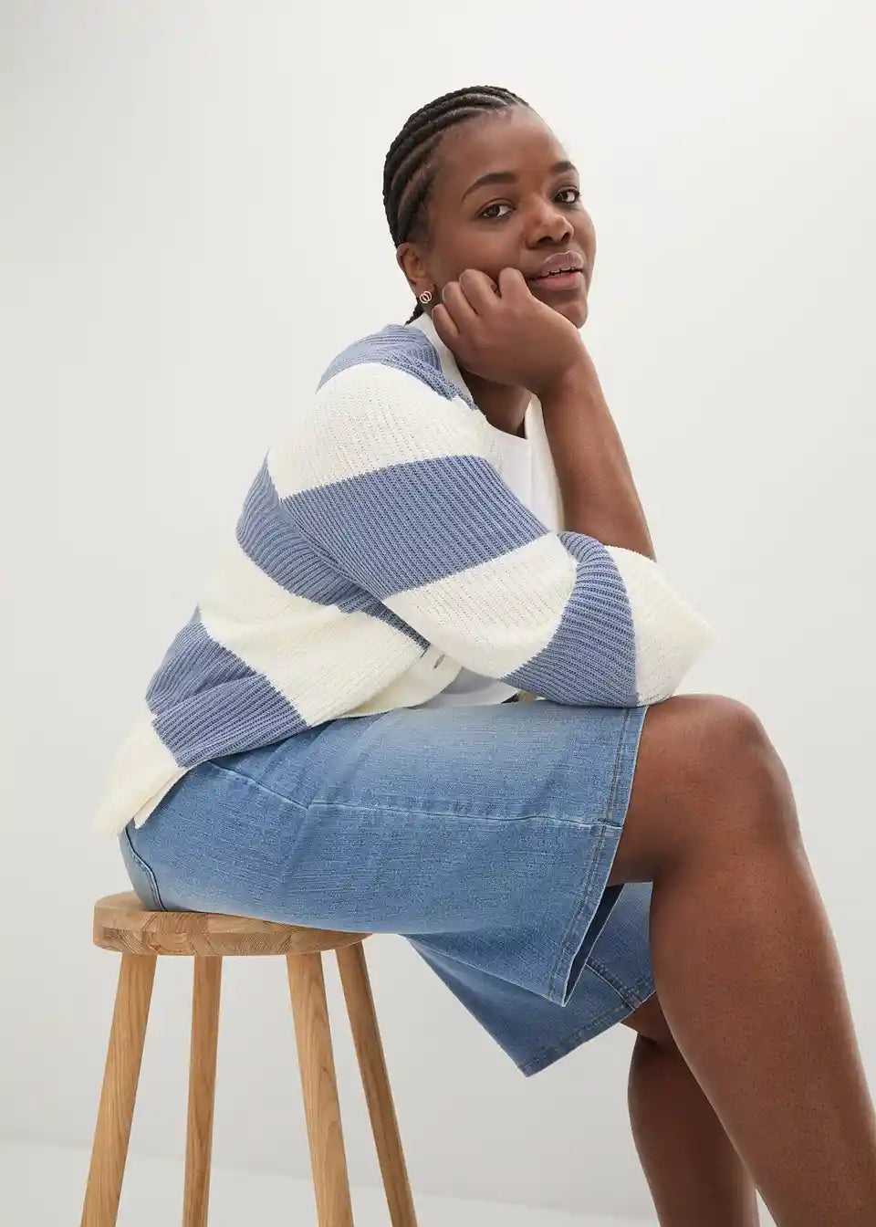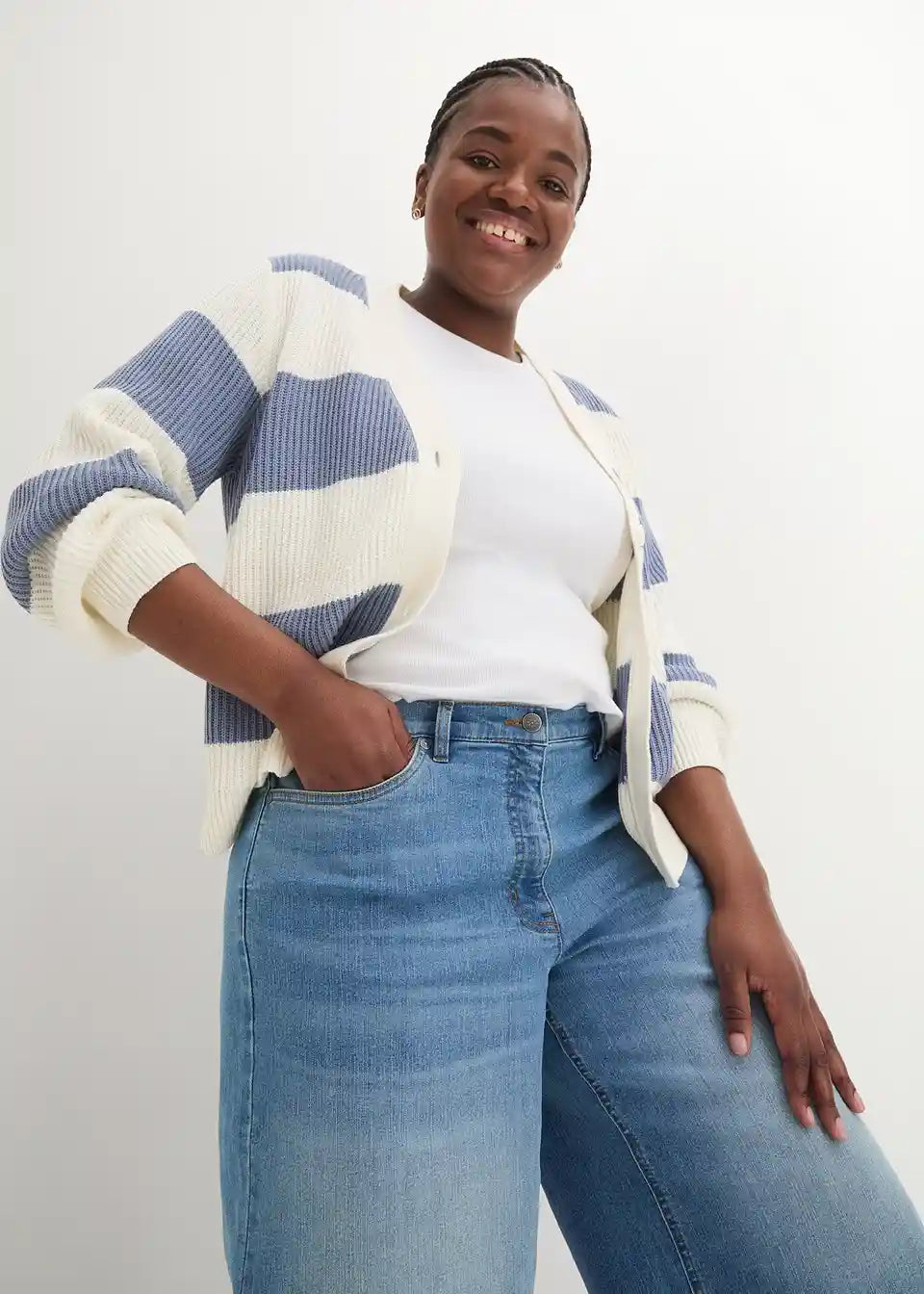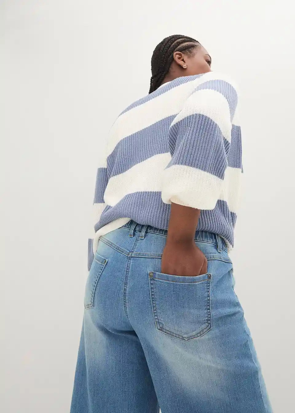 Bermuda kavbojke z visokim pasom in stretch materialom