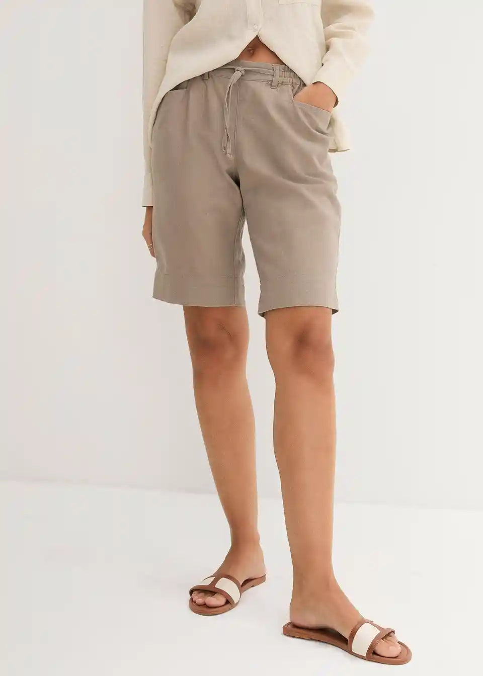 Lahkoten material naredi te lanene bermuda hlače znamke bpc odličen kos oblačila za toplejše temperature. Zaradi zavihanega roba je mogoče prilagajati dolžino rahlo spranih bermud. Delno elastičen pas z vrvico za uravnavanje širine zagotavlja udobno prileganje. Med dodatne praktične podrobnosti spadata dva žepa na sprednji strani in našita žepa na zadnji strani.