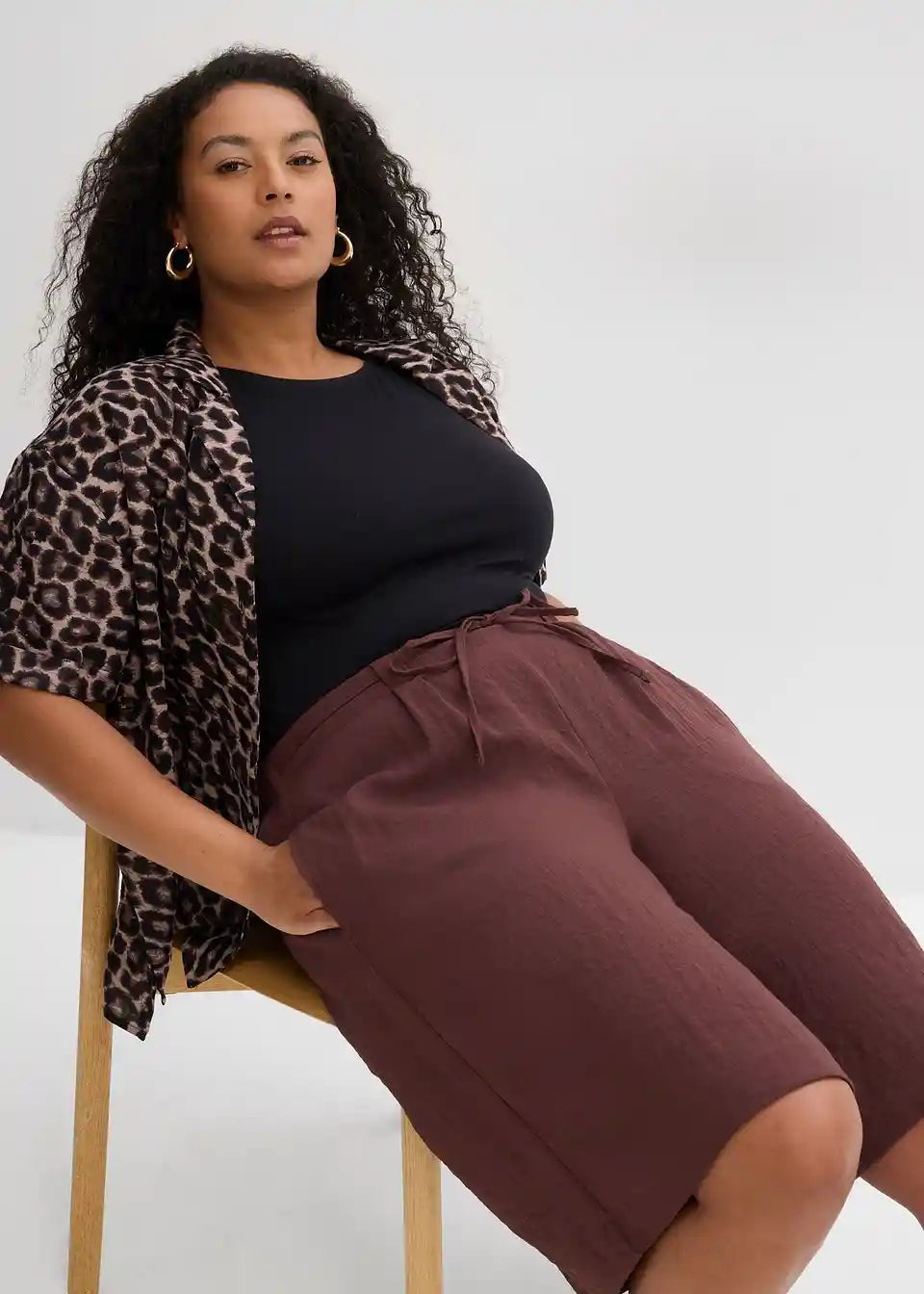 Bermuda hlače s široko potekajočimi hlačnicami in stranskimi všitimi žepi
