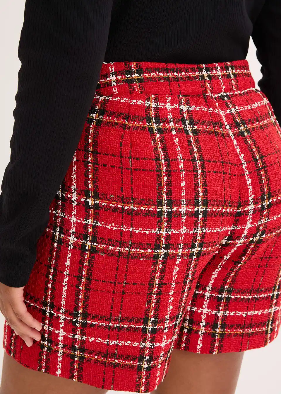 Modne kratke hlače iz bukleja s kljukico in obročkom za zapenjanje spredaj