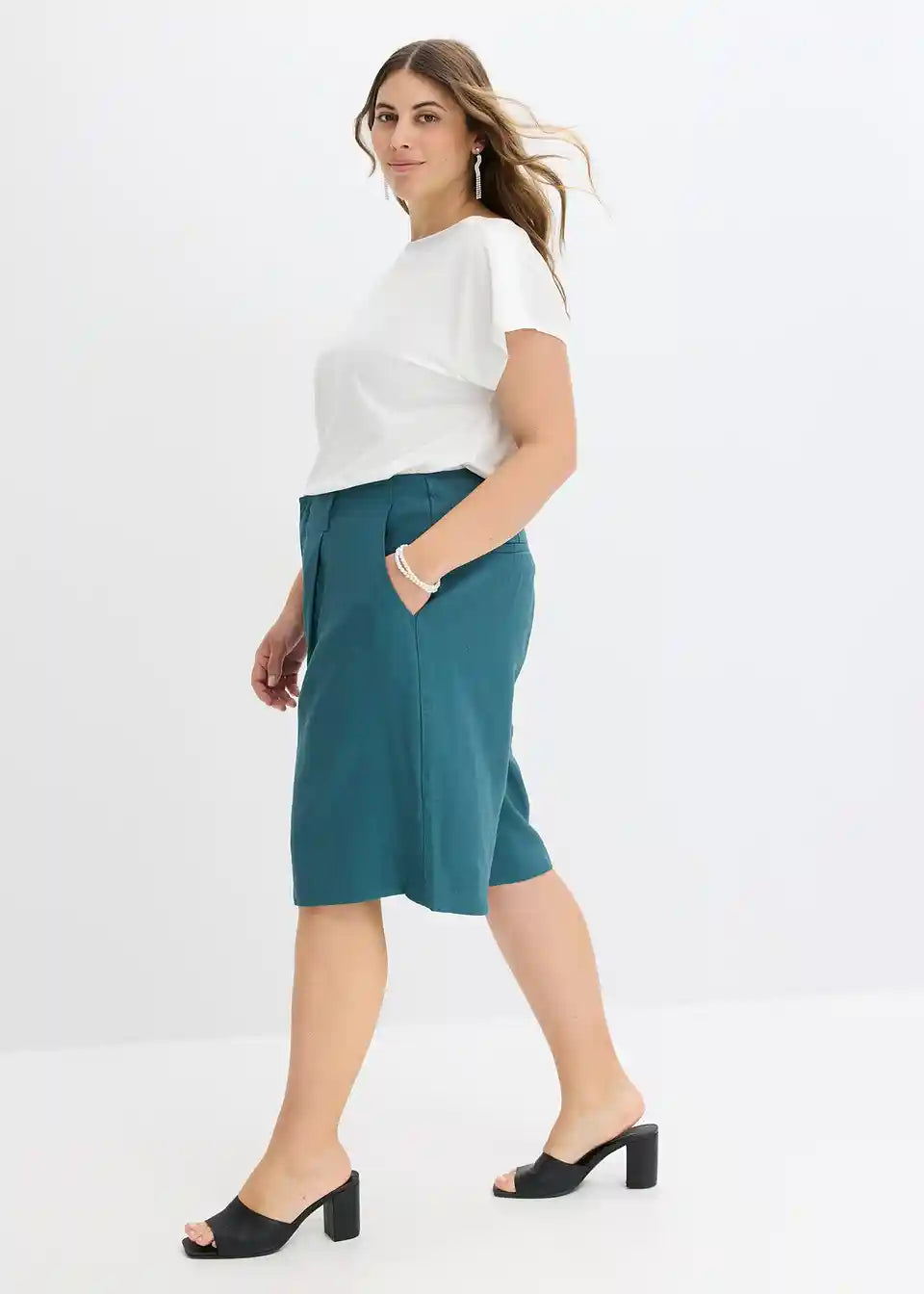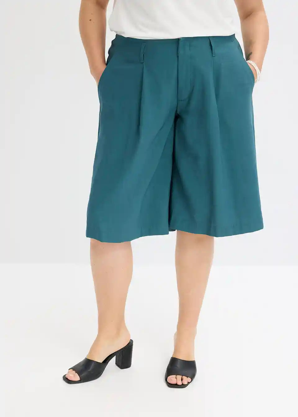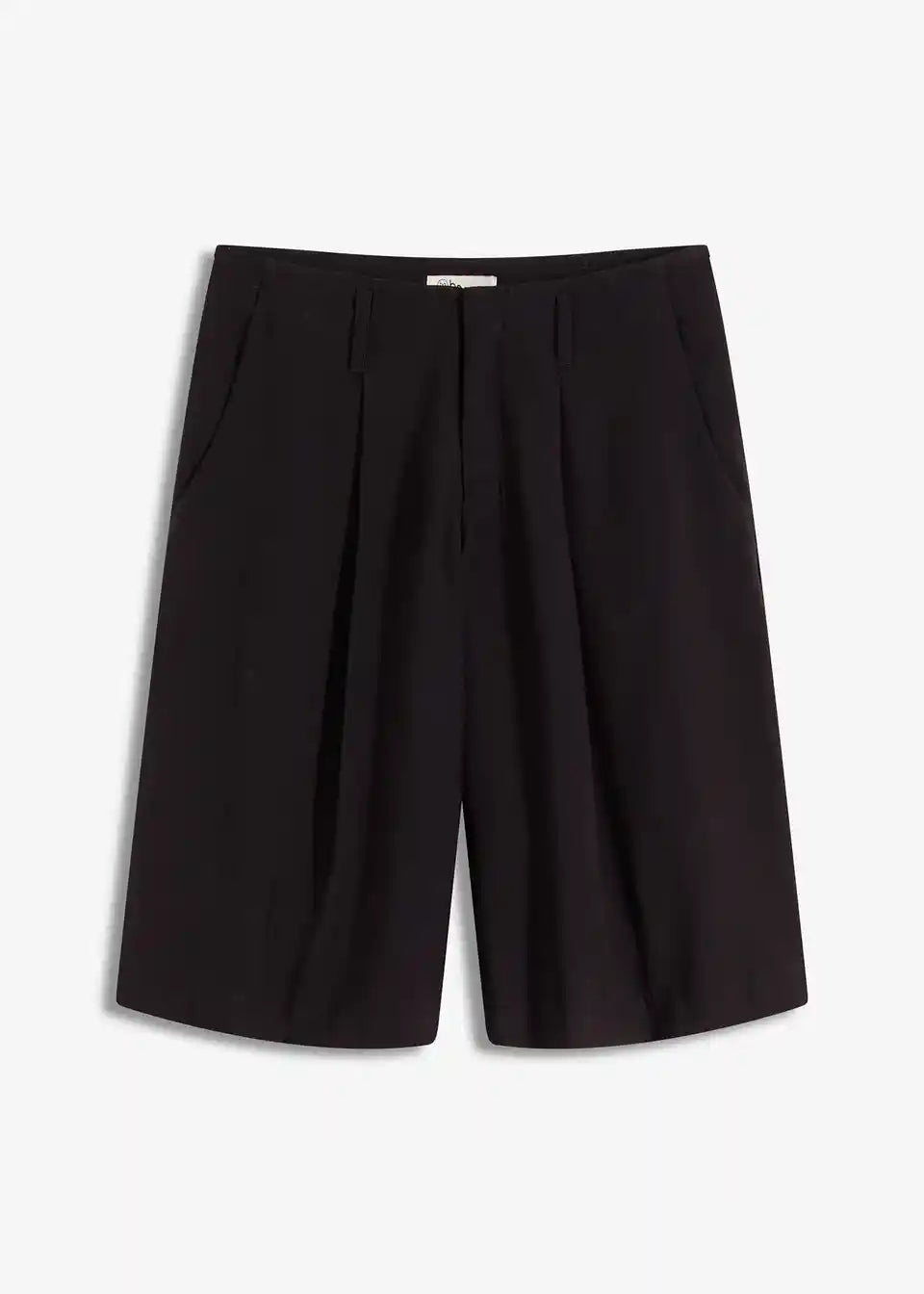 Moderne bermuda hlače z gubami v pasu v ohlapnem kroju