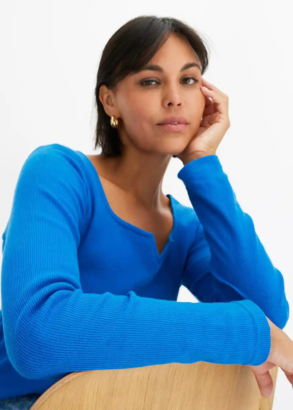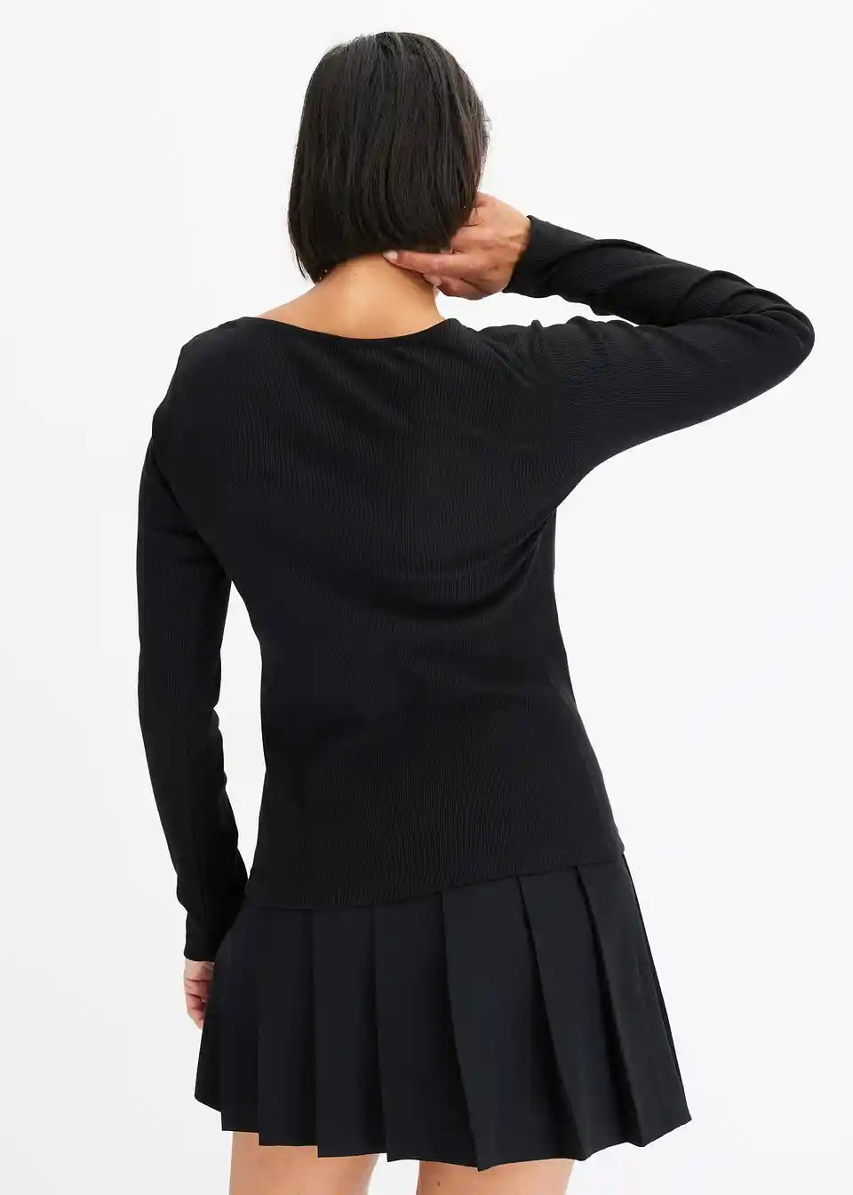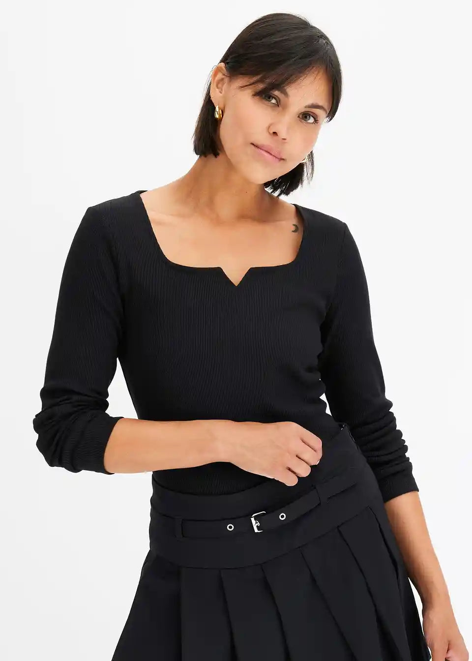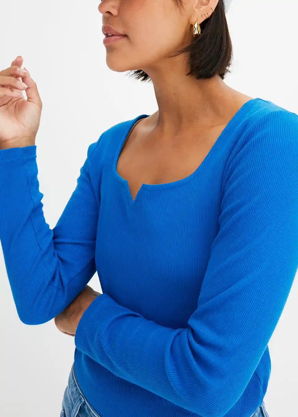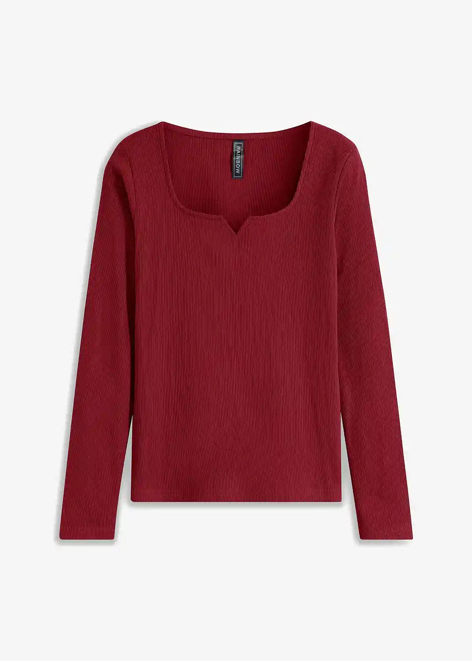 Dolgo sleeved rebrasta majica z globokim izrezom
