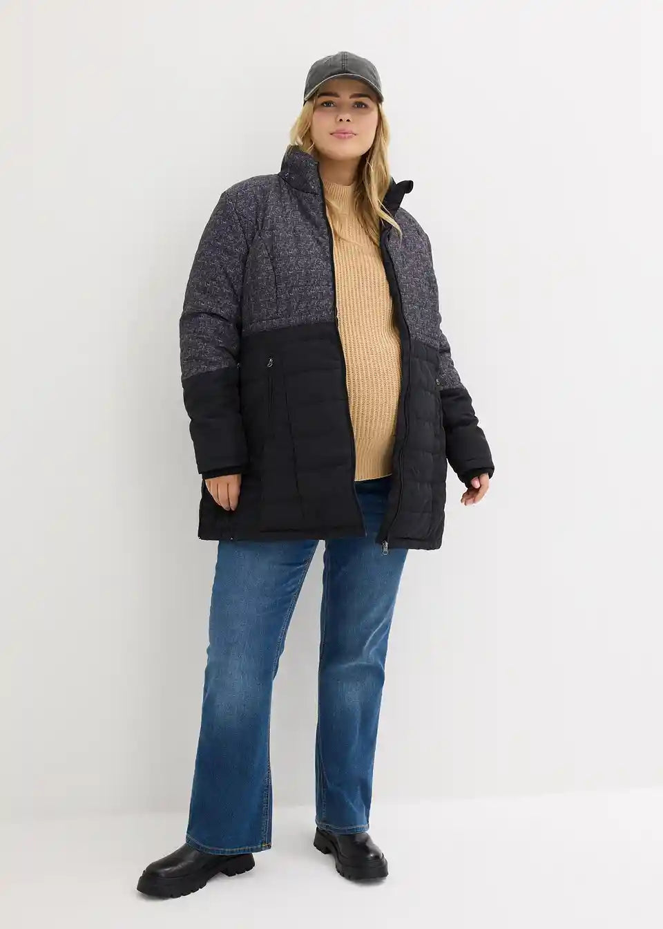 Srednje toplo podložena prešita jakna za nosečnost in po njej