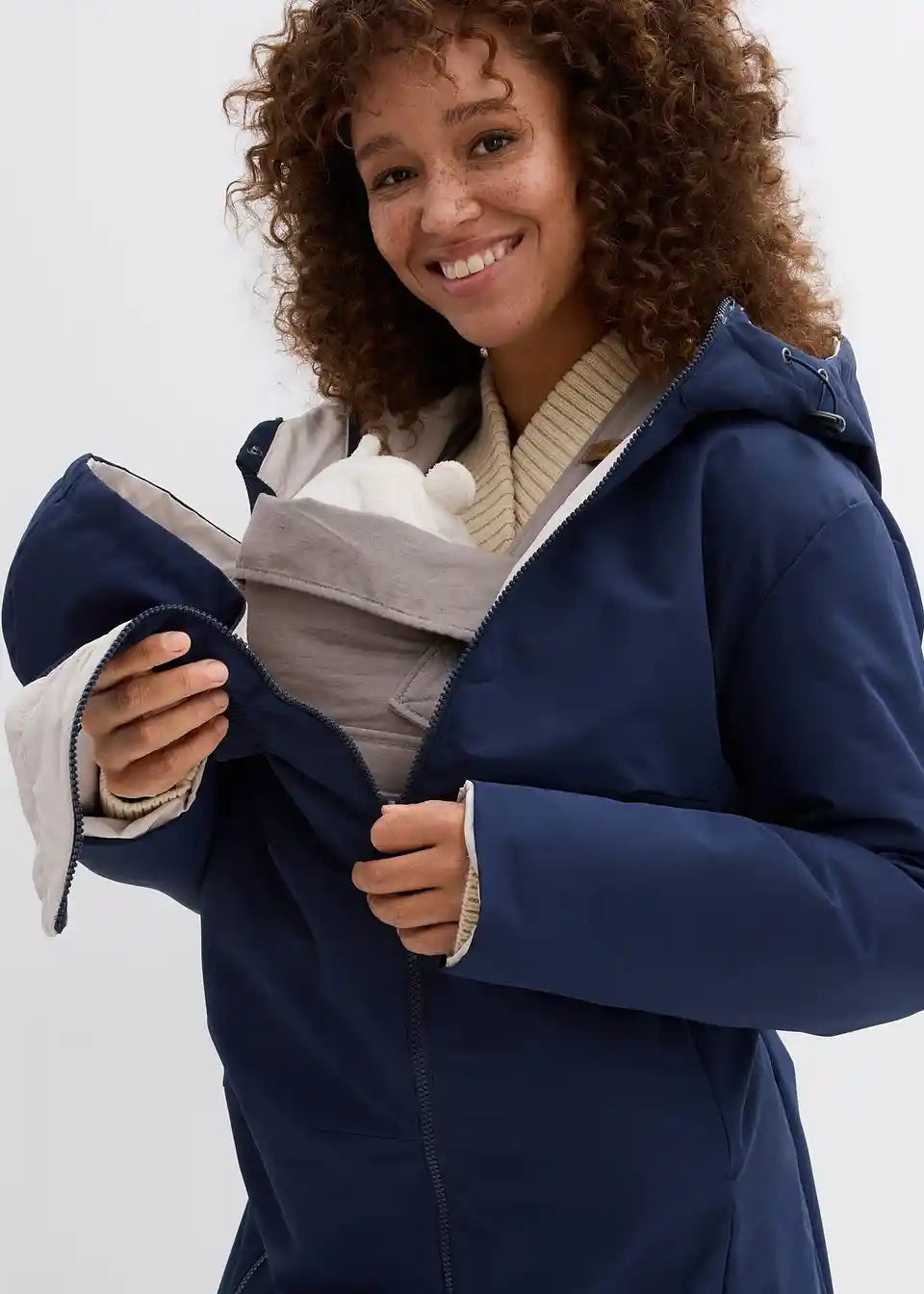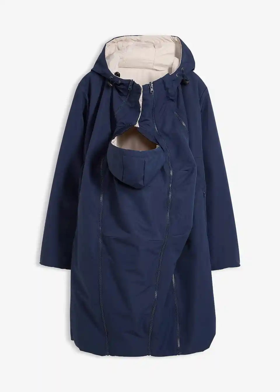 Vodoodbojen 6-v-1 obojestranski nosečniški plašč z všitkom za nošenje otroka in nosečniški trebušček