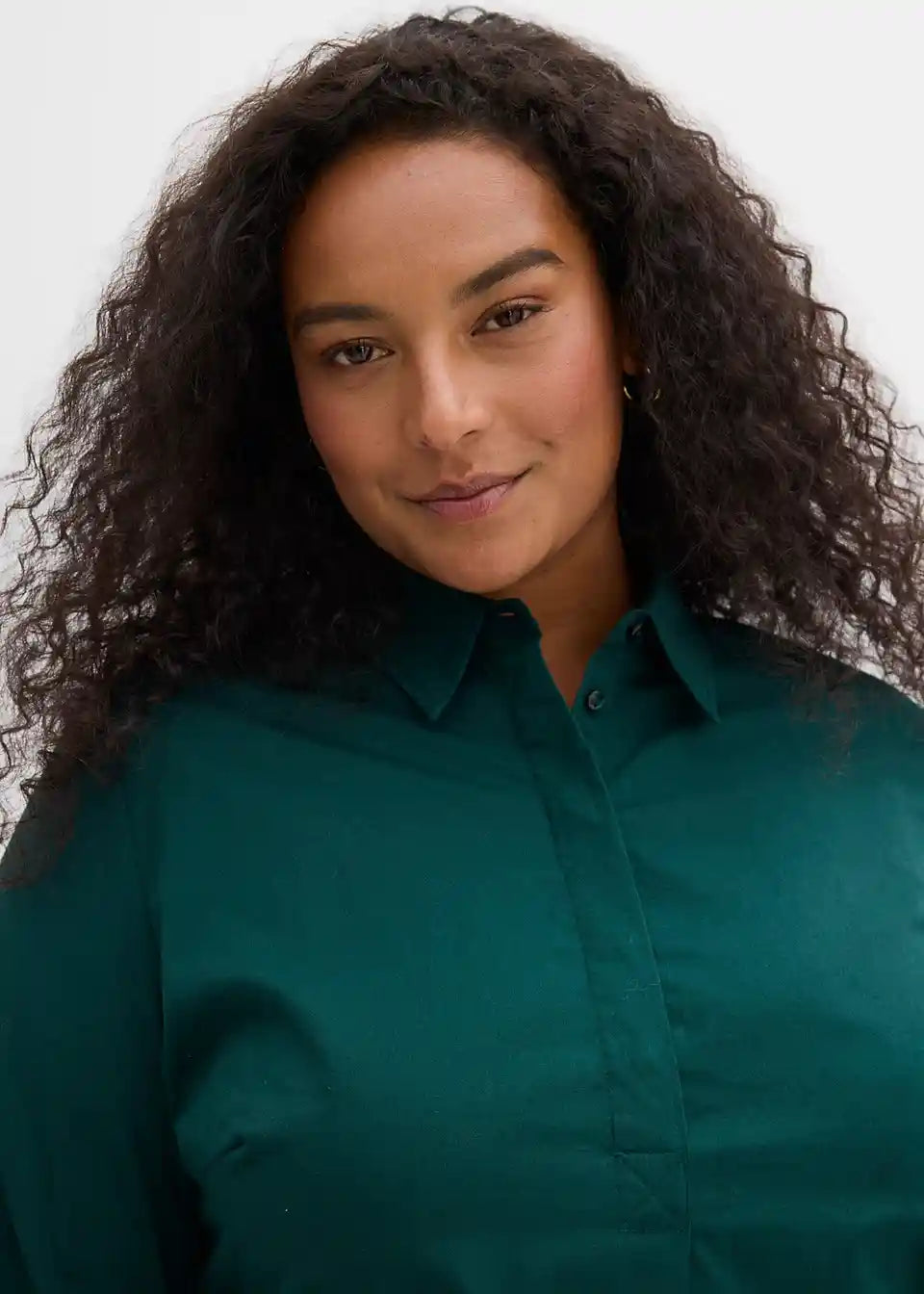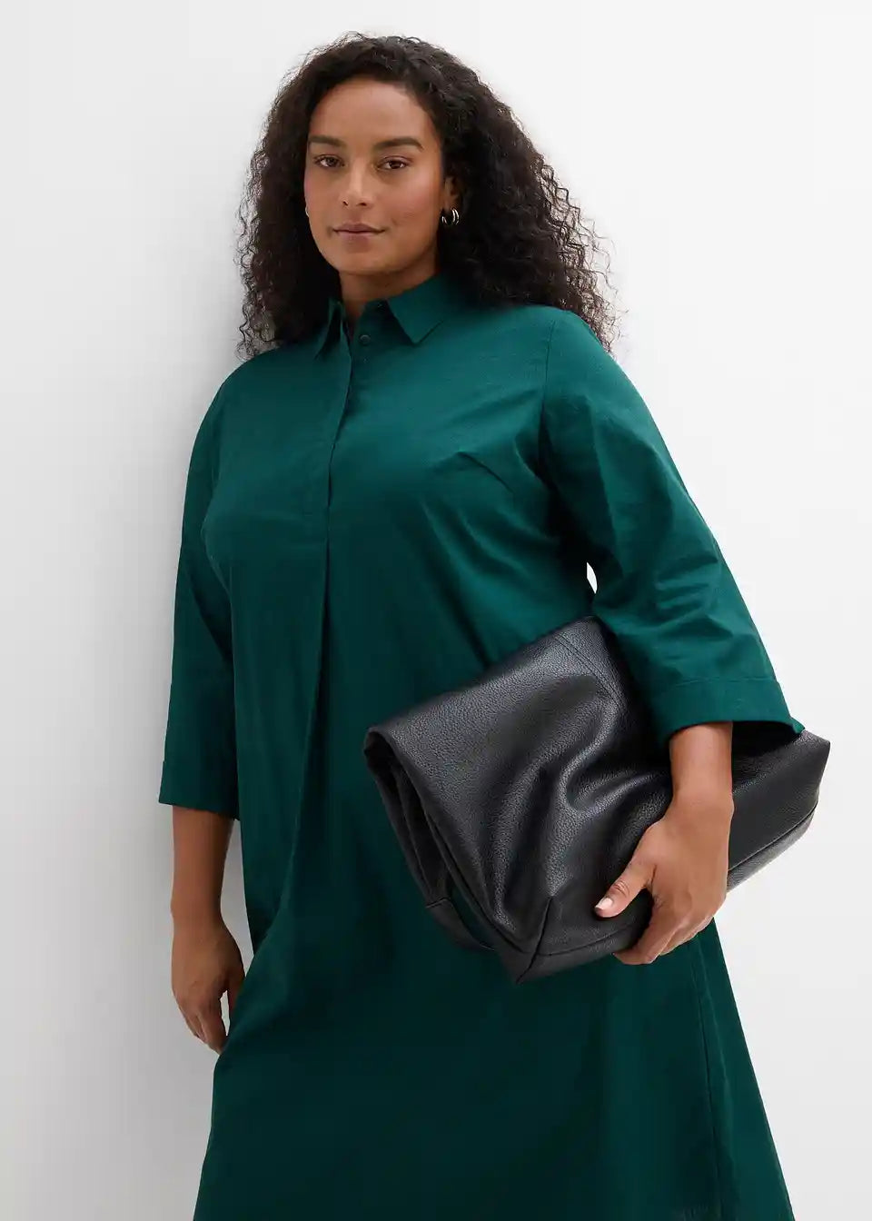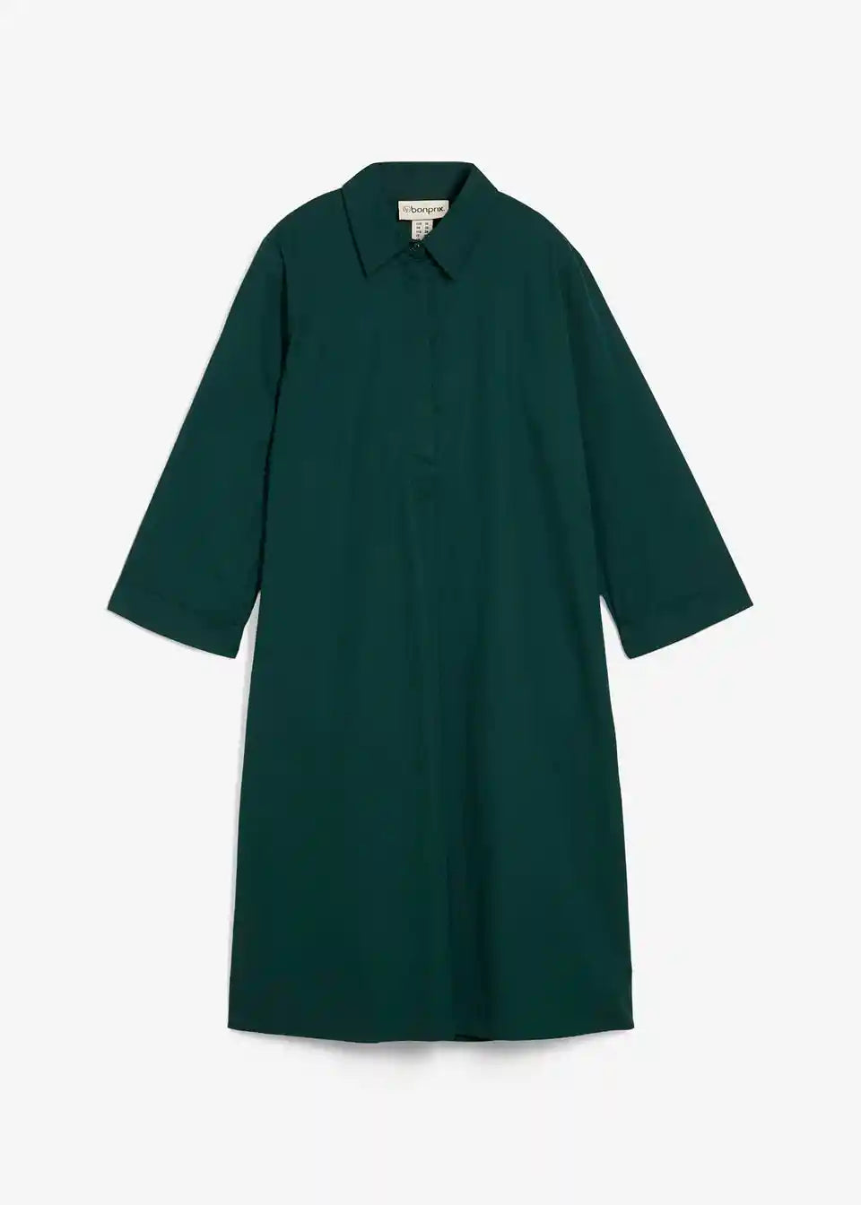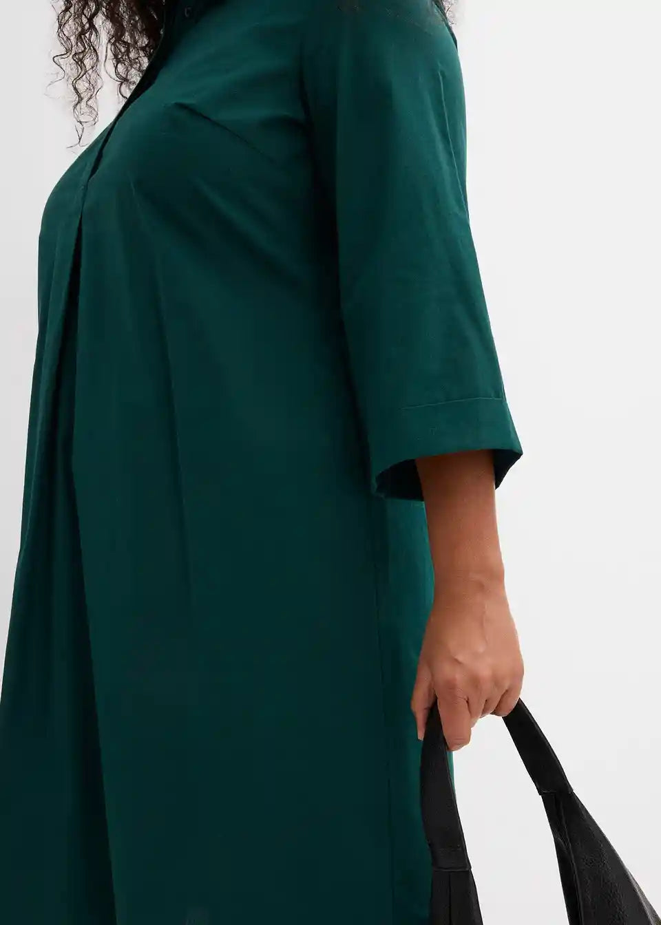 Široka, rahlo tajlirana obleka s 3/4-rokavi s fiksiranim zavihkom