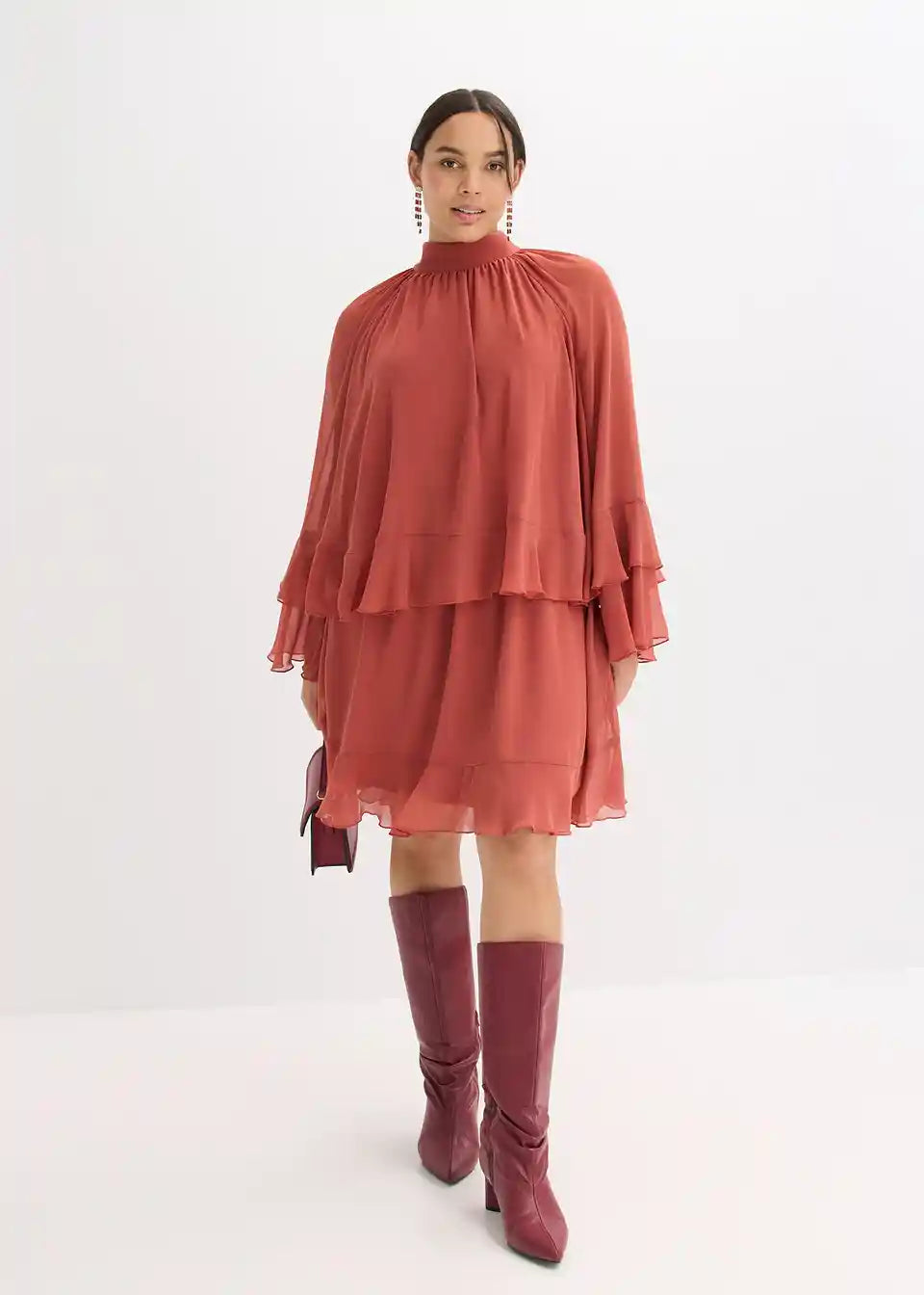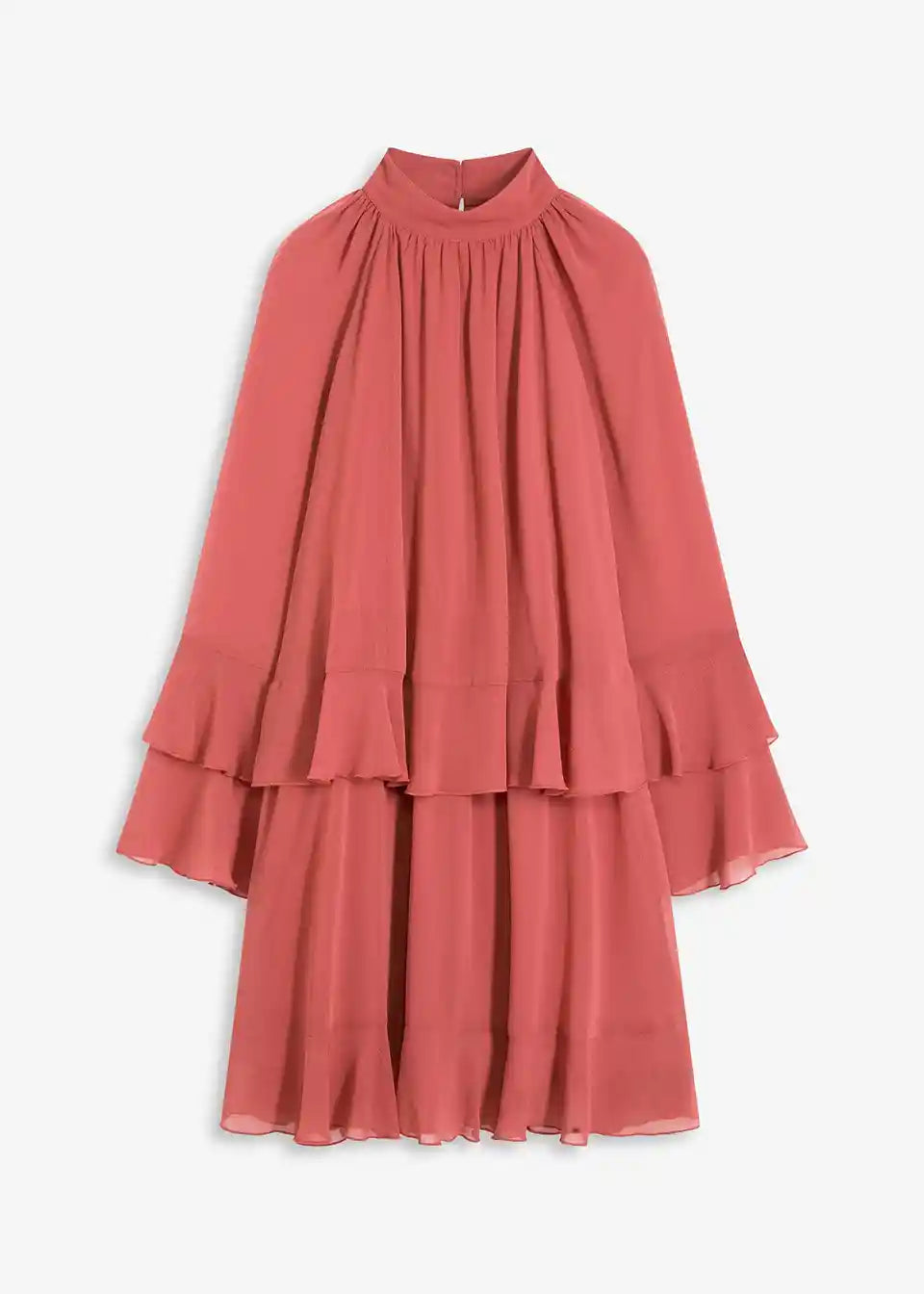 Modna široka obleka iz šifona z volani