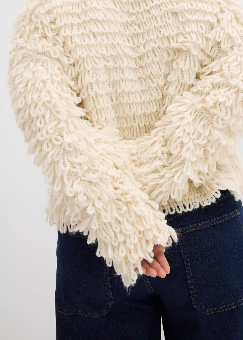 Trendna pletena jopa z v rokave podaljšanimi ramami