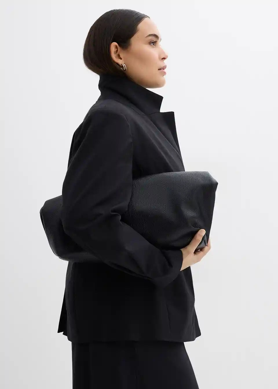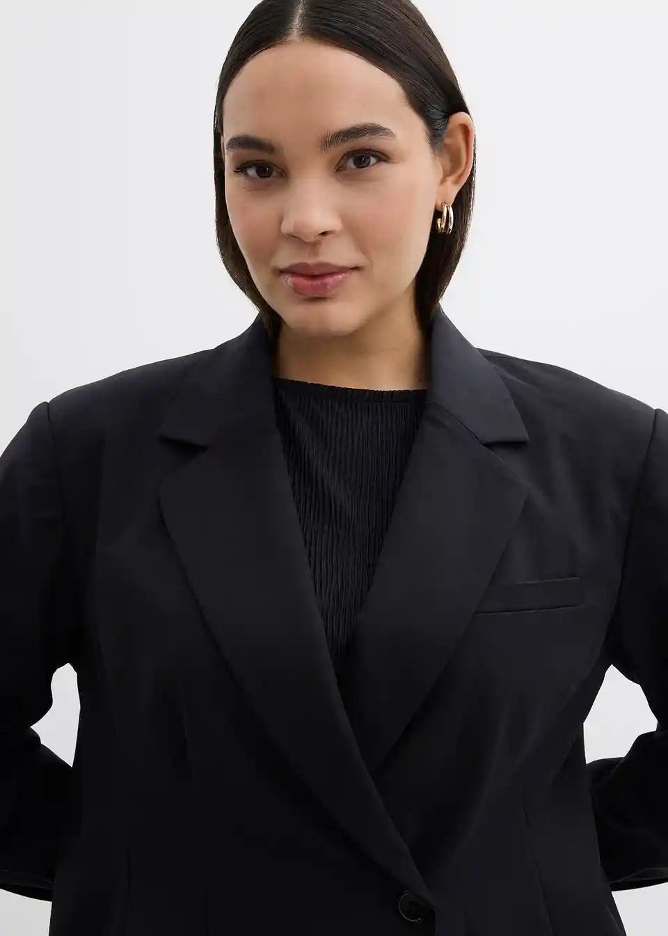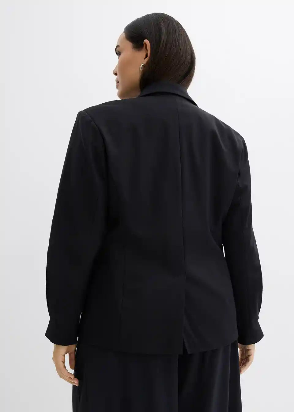 Lepo tajliran blazer, ki ponazarja obliko peščene ure, z asimetričnim zapenjanjem z gumbi spredaj
