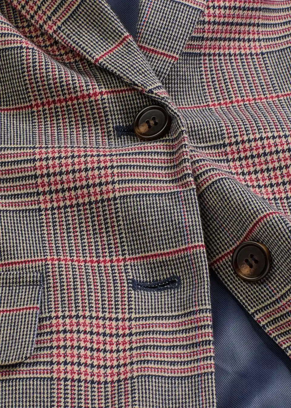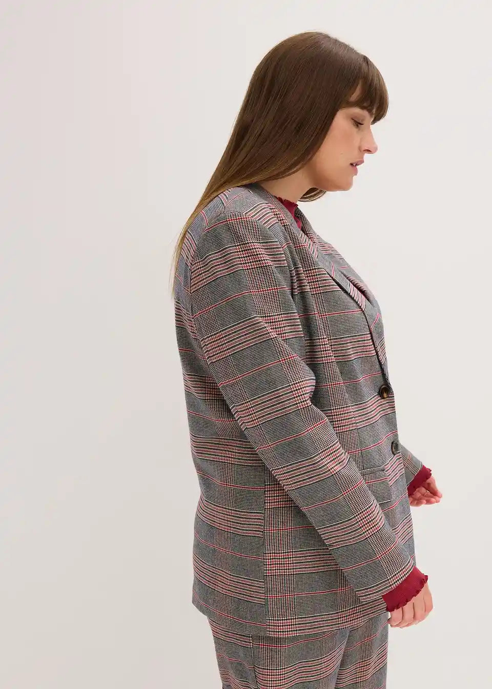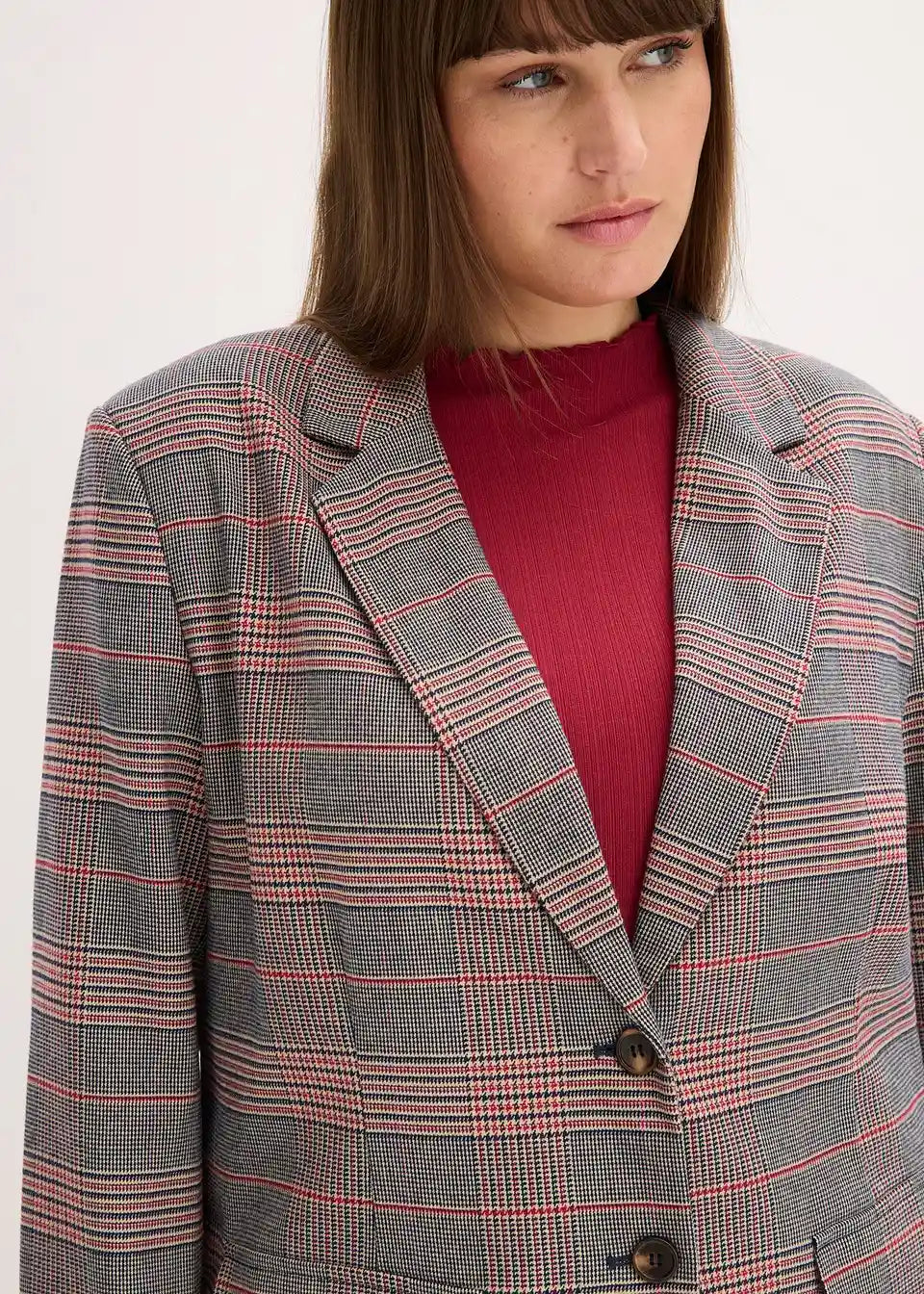 Enoredni blazer z močno poudarjenimi ramenskimi predeli zaradi blazinic in žepi s poklopci
