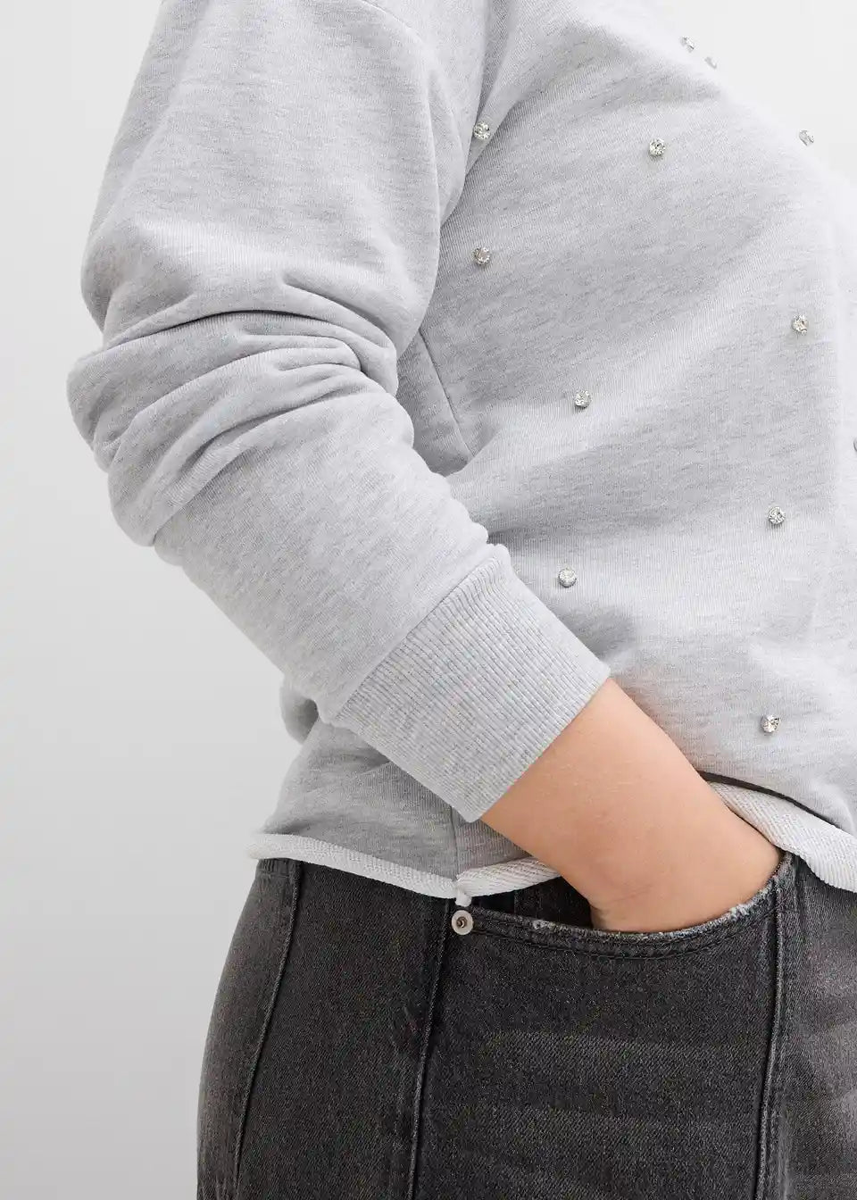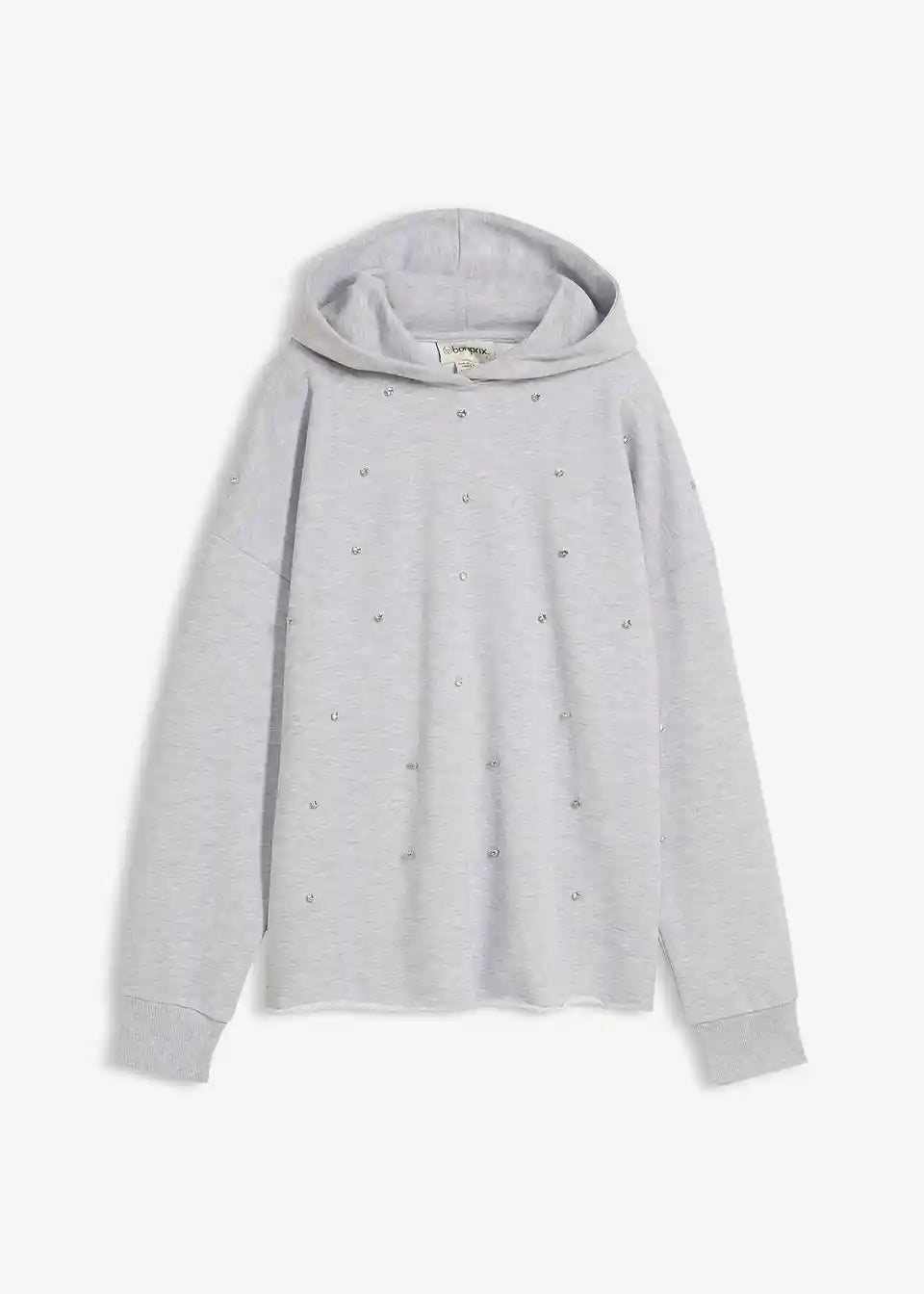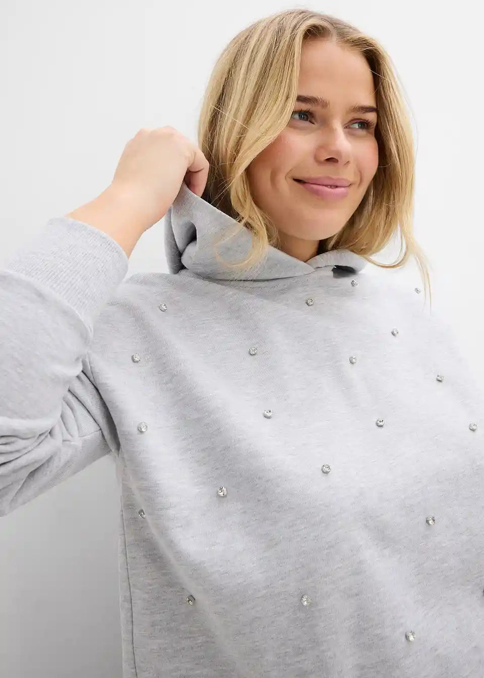 Udobna ohlapna jopa s kapuco in z okrasnimi kamenčki