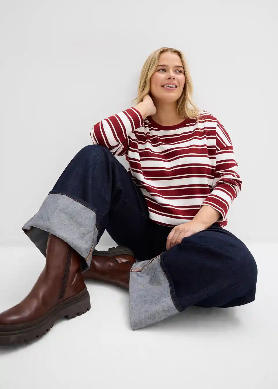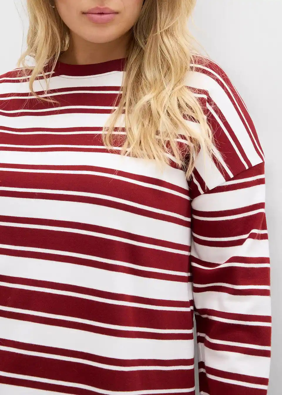 Udobna ohlapna majica iz čistega bombaža z dolgimi rokavi s črtami